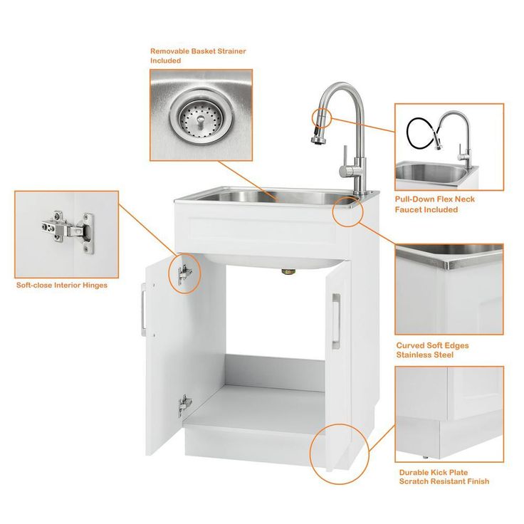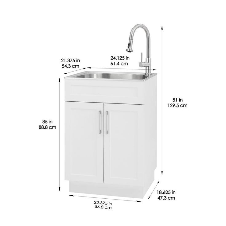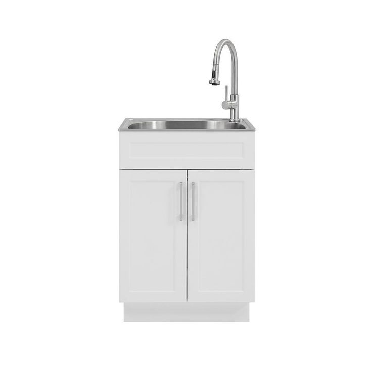 All-in-One 24.125 in. x 21.375 in. x 35 in. Stainless Steel Laundry Sink with Faucet and Storage Cabinet