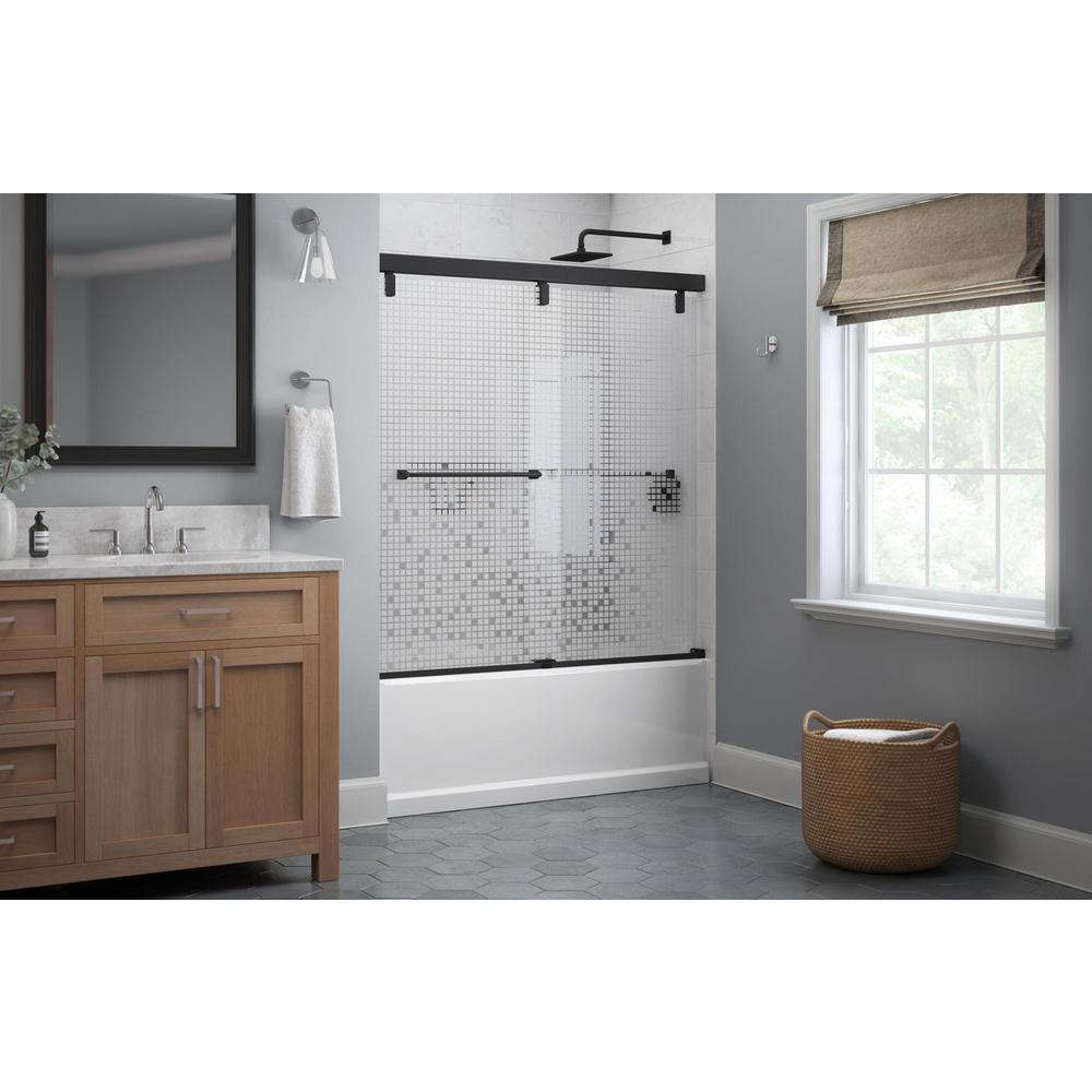 Everly 60 in. x 59-1/4 in. Mod Semi-Frameless Sliding Bathtub Door in Matte Black and 1/4 in. (6mm) Mozaic Glass
