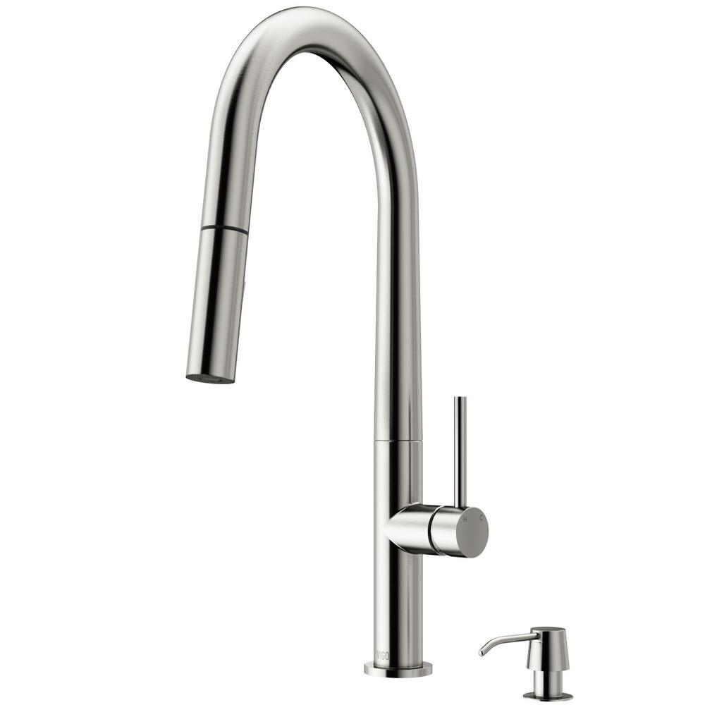 Sleek and minimalist in design, the VIGO Greenwich Pull-Down Spray Kitchen Faucet and Soap Dispenser are the perfect additions to any modern kitchen. The dual-action faucet features a dramatic high arch and clean lines. Easily switch from stream to spray for any kitchen needs. Solid brass construction and a corrosion-resistant finish make the pull-down faucet built to last. An included, in-counter, refillable soap dispenser of a matching finish holds up to 10 oz. of hand soap, dish soap, or hand lotion for optimal convenience.