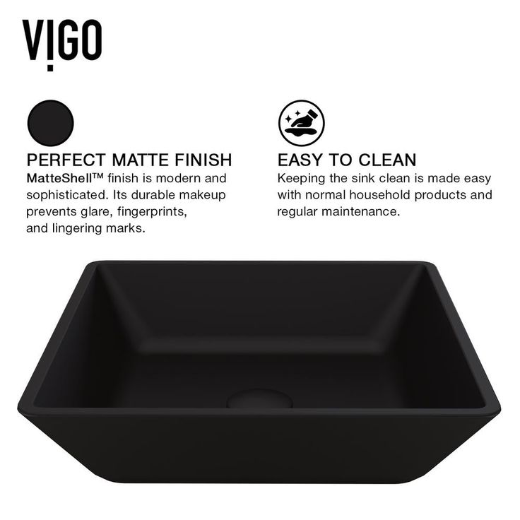 From deliberate design and pristine construction comes the VIGO Black Roma MatteShell Vessel Bathroom Sink. Innovative and intense, MatteShell sinks bring the same excellence of classic solid tempered glass sinks and take them to the next level. The Black Roma is deeply opaque and has an eggshell-like sheen that is rich yet subtle. Its deep ebony shade is infused into the sink itself, eliminating any risk of a chipped finish. The sink also has a fingerprint-free coating to prevent the appearance of marks. The sink has a distinctive rectangular shape with curved edges. This design makes it easy to maintain and love in the home as a unique piece of functional art. Experience the synergy of character and style all in one with the VIGO Roma MatteShell.