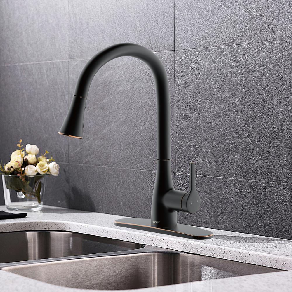 Sleek design and trusted construction come together with the FLOW Series Classic Kitchen Faucet. Featuring a retractable dual function spray head, durable ceramic cartridge, and metallic waterway, the FLOW Classic is the simplistic upgrade your kitchen deserves. The easy installation process allows you to fit this faucet in a single or three hole sink, and the luxurious finishes compliment kitchens of all styles.