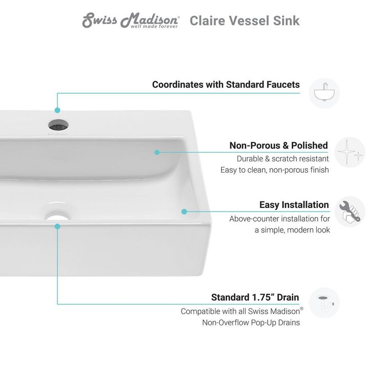 Satisfyingly elegant, the Claire Vessel Sink features a fresh look for classic white ceramic, in true minimalist fashion. Striking simple style, while maximizing precious bathroom space, makes counter independent sinks popular for powder rooms. Features smooth baked-on glaze and non-porous high-gloss finish, for durable scratch-resistant and easy to clean convenience.