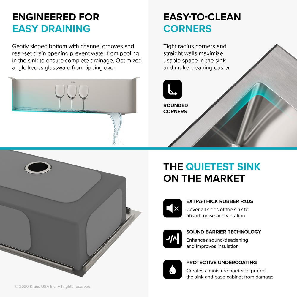 • Durable and dent-resistant sink made with highest quality 18-Gauge T-304 stainless steel