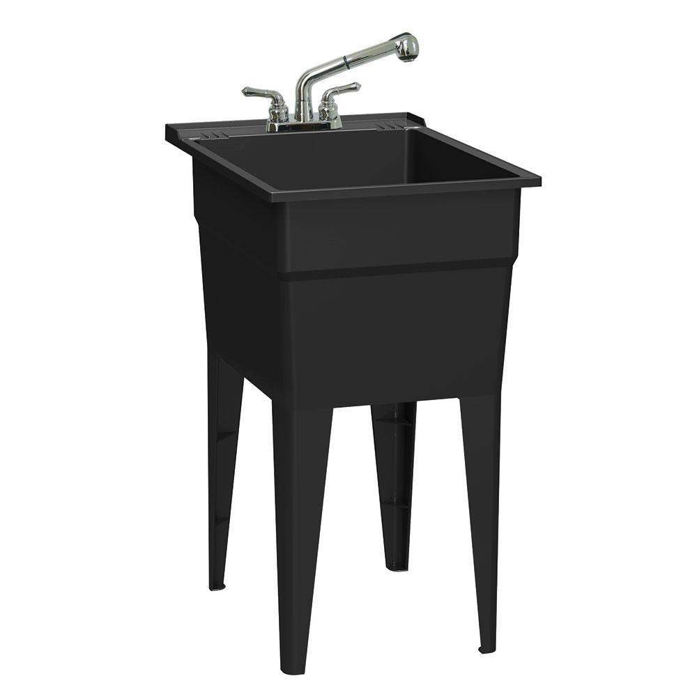 18 in. x 24 in. Recycled Polypropylene Black Laundry Sink with 2 Hdl Non Metallic Pullout Faucet and Installation Kit