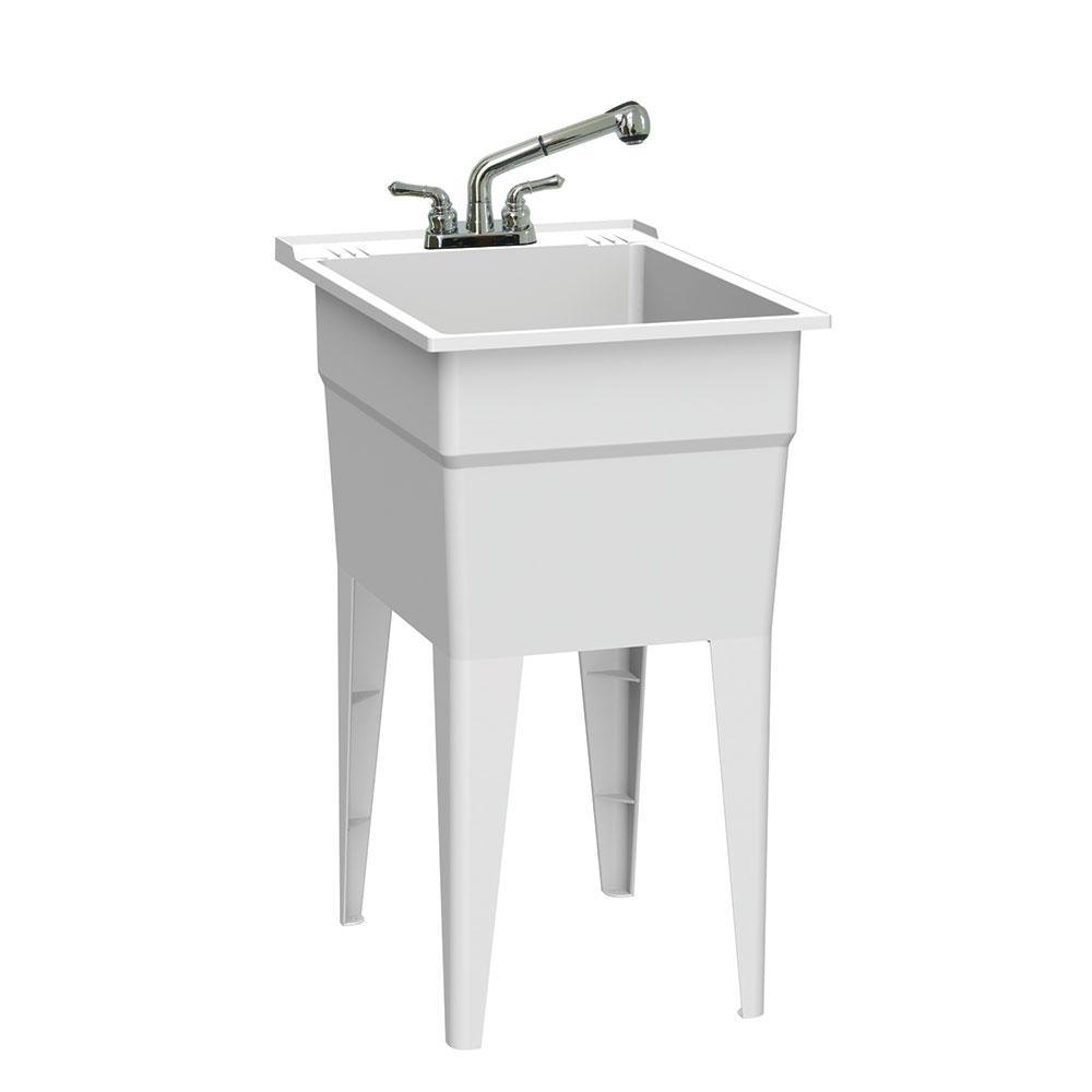 18 in. x 24 in. Polypropylene White Laundry Sink with 2 Hdl Non Metallic Pullout Faucet and Installation Kit
