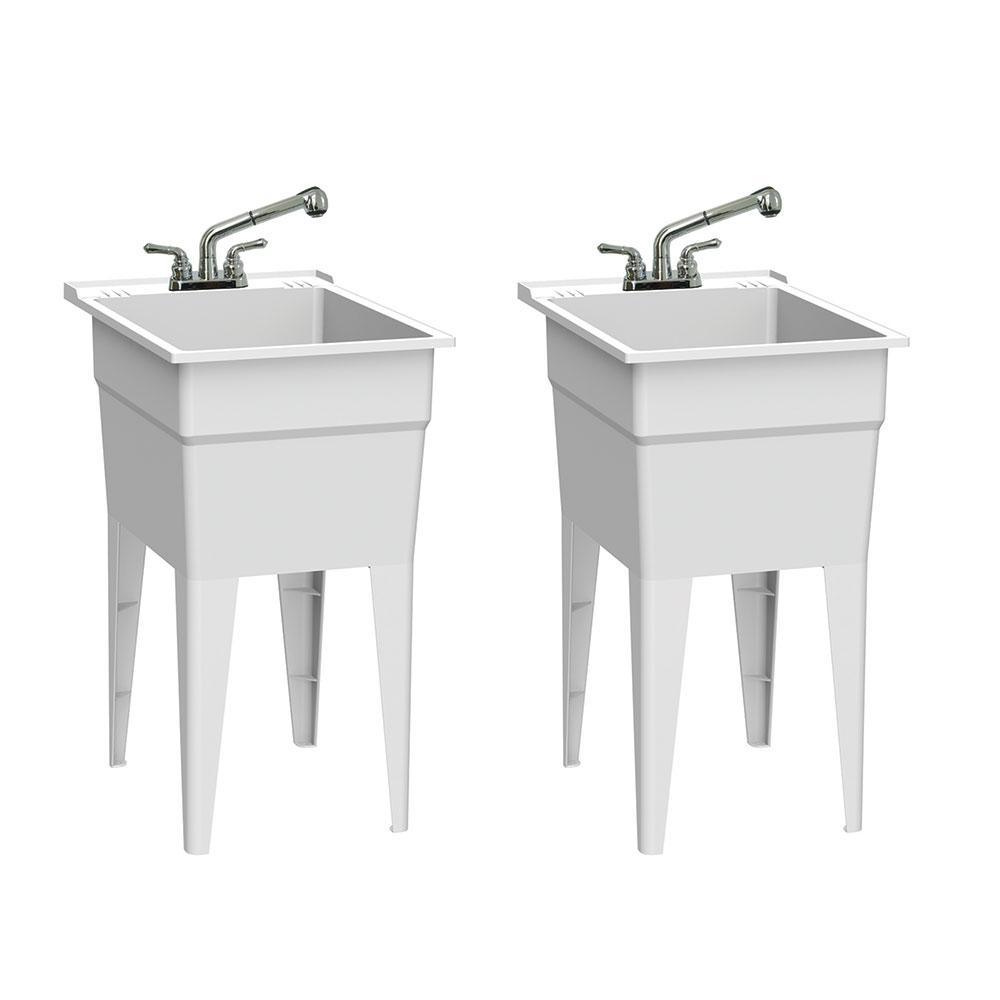 18 in. x 24 in. Polypropylene White Laundry Sink with 2 Hdl Non Metallic Pullout Faucet and Installation Kit (Pack of 2)