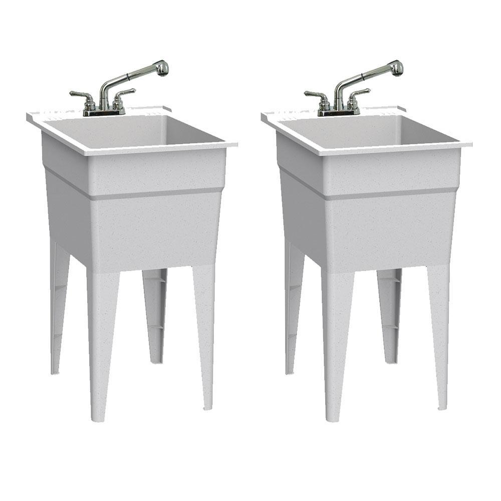 18 in. x 24 in. Polypropylene Granite Laundry Sink with 2 Hdl Non Metallic Pullout Faucet and Installation Kit (Pk of 2)