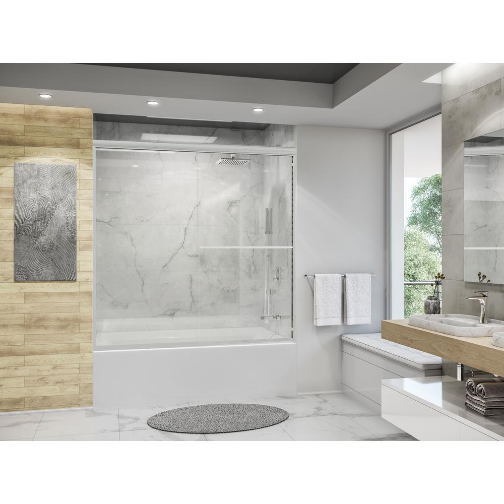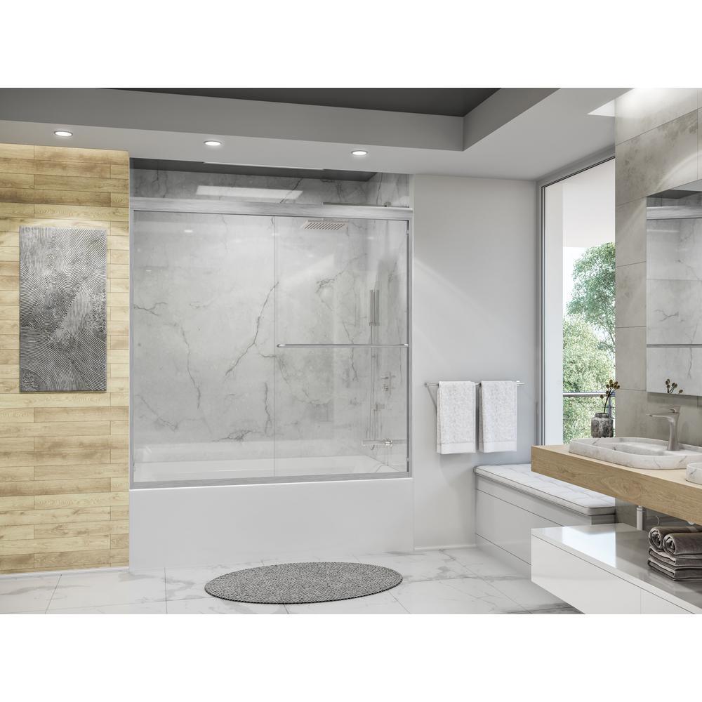 Combine style and utility with the Distinctive bypassing sliding shower door in clear glass. The bypassing feature allows both shower panels to glide effortlessly from side to side. The sturdy, rounded-style towel bar provides durable towel storage, and the convenient knob pull allows easy access without the bulk of a traditional handle. The EasyClean 10-year glass coating is water-repellent and keeps glass free of water spots, making clean up quick and easy. Choose the best of elegance and function with the Distinctive sliding shower door.