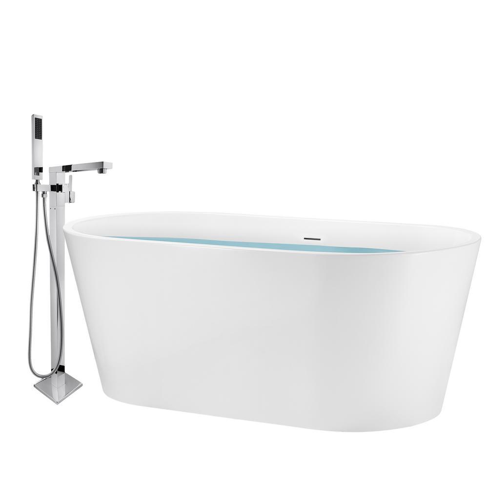 67 in. Glossy White Acrylic Bathtub - Modern Flat Bottom Stand Alone Tub - Luxurious SPA Tub