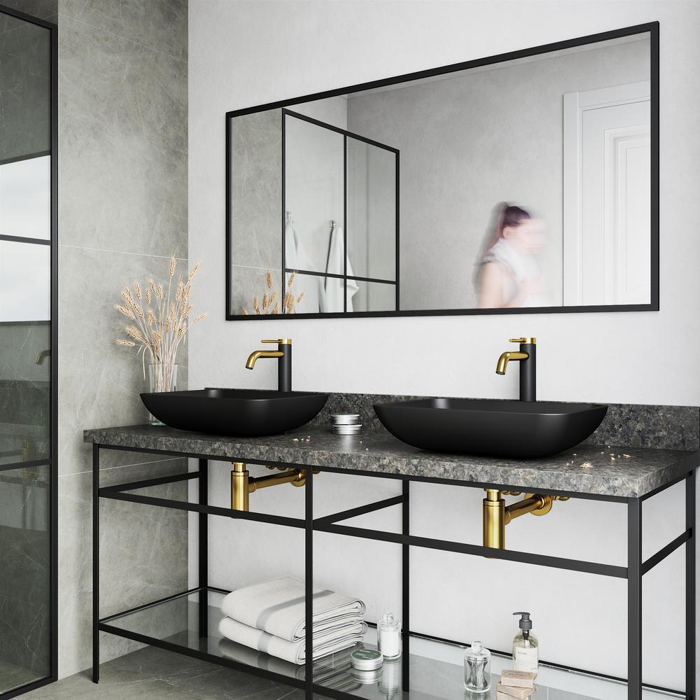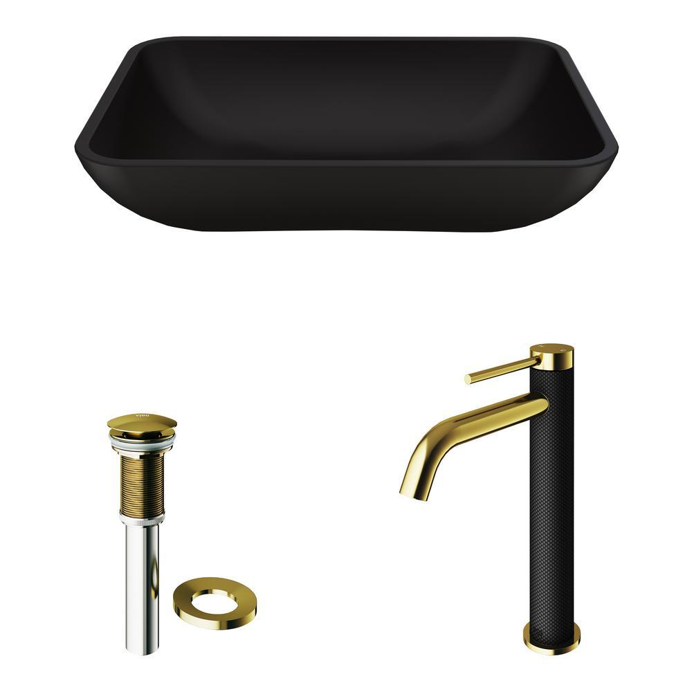 MatteShell Rectangular Vessel Bathroom Sink in Black and Lexington cFiber Faucet in Matte Gold/Matte Black