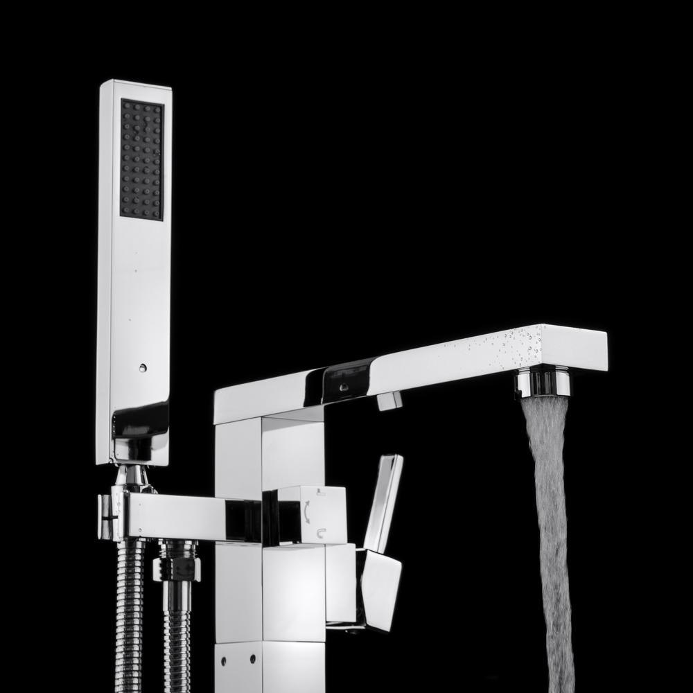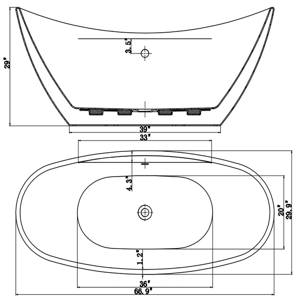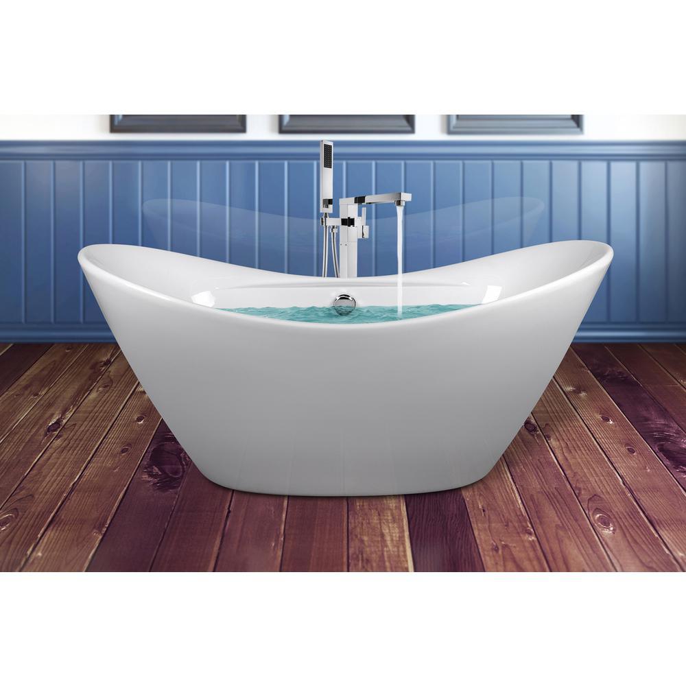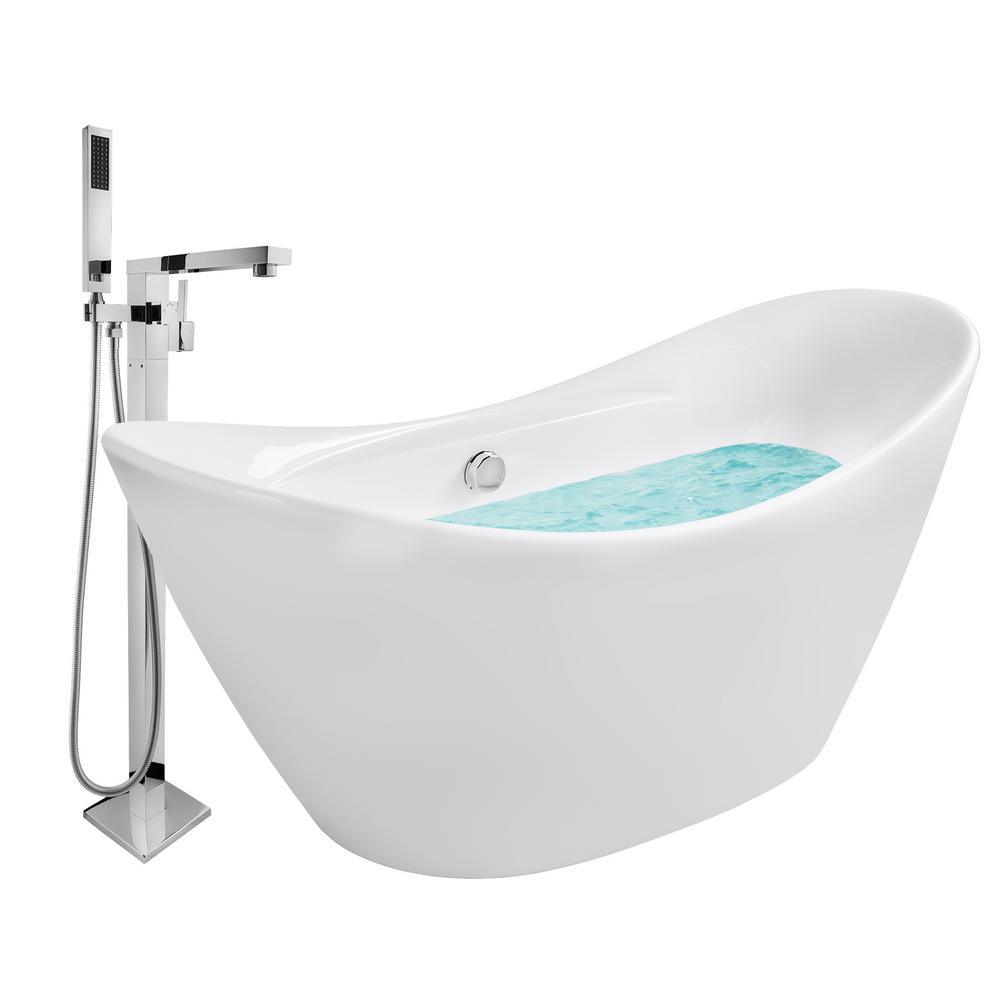 67 in. Fiberglass White Acrylic Tub for Bathtub with Tub Filler Combo - Modern Flat Bottom Stand Alone Tub