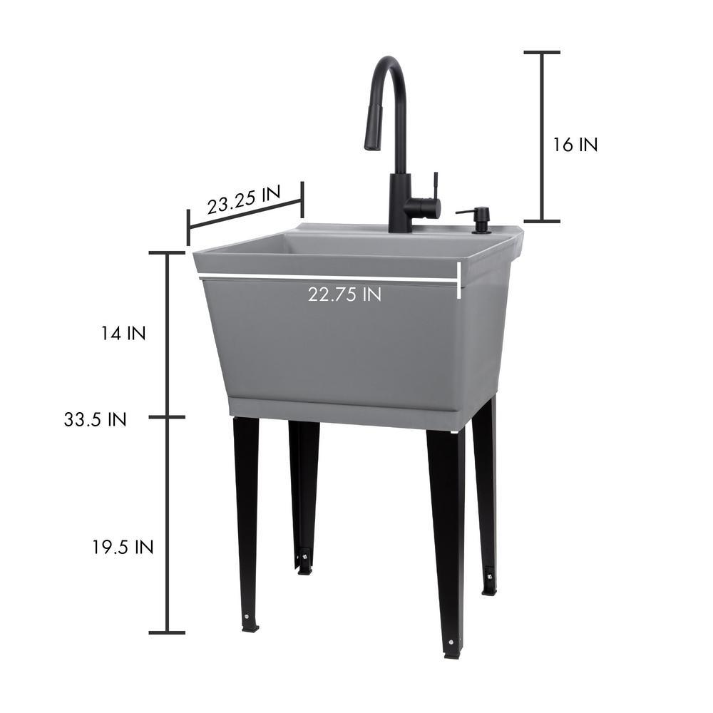 Complete 22.875 in. x 23.5 in. Grey 19 Gal. Utility Sink Set with Black Metal Hybrid Faucet and Soap Dispenser