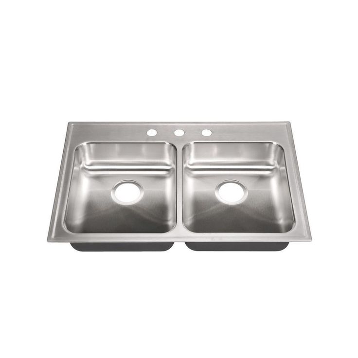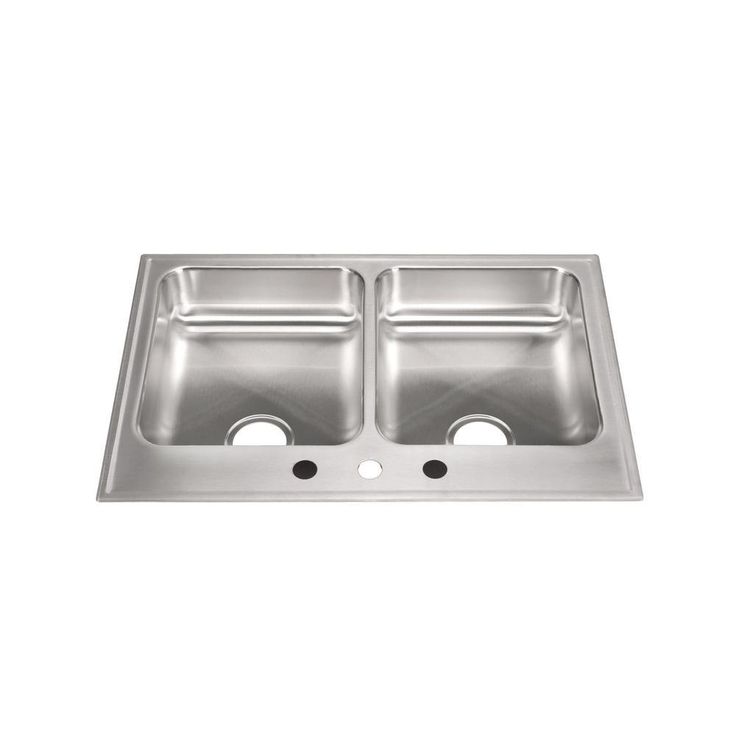 2-Bowl, Drop-In, ADA with Faucet Ledge, 18-Gauge, SS Sink, 2-Compartment, O.D. 22 in. x 33 in. 3-Hole, Drain Center Rear