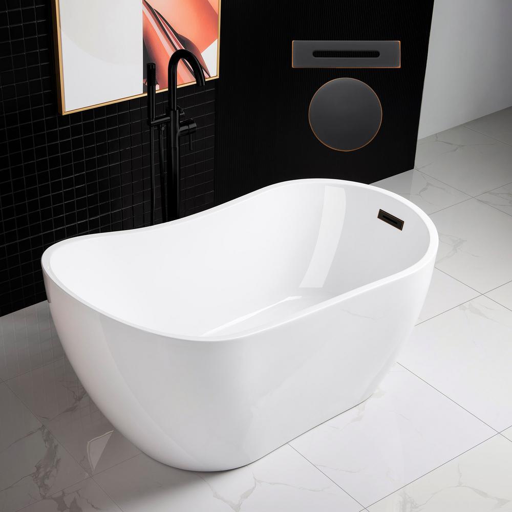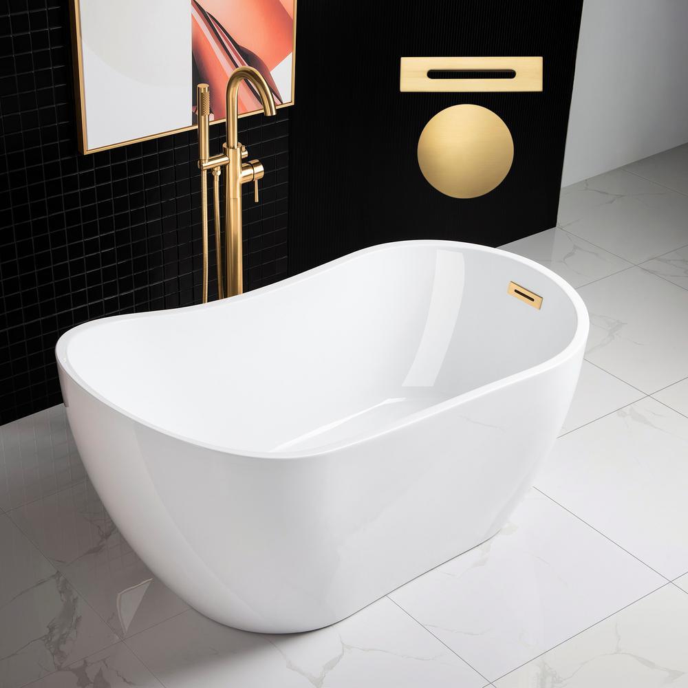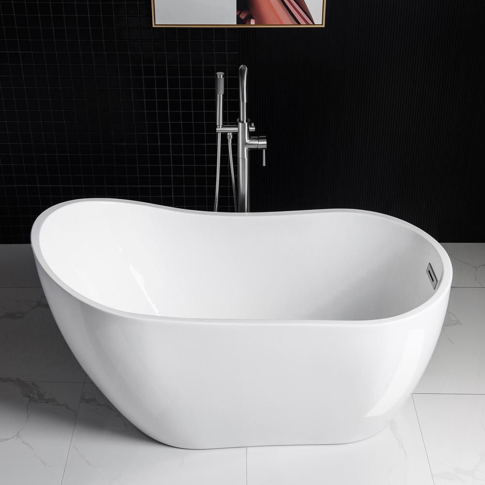 Compact yet luxurious, this 54-inch freestanding single-slipper bathtub is crafted from high-gloss acrylic reinforced with fiberglass for lasting durability. It features an integrated sealed overflow and drain, slip-resistant bottom, and generous 55-gallon soaking capacity—perfect for spa-like comfort in smaller baths.