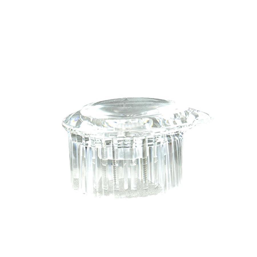 Fits Moen Posi-Temp tub/shower fixtures Hot and cold graphic conveniently indicates the temperature mix Brand-specific fit handle for an exact match Brass and plastic construction with a clear finish for a refreshed look 2-3/8 in. diameter at base; 2 in. height Easy to install with little tools required There is an error in the instructions. - the handle should be pointing down to start off for installation