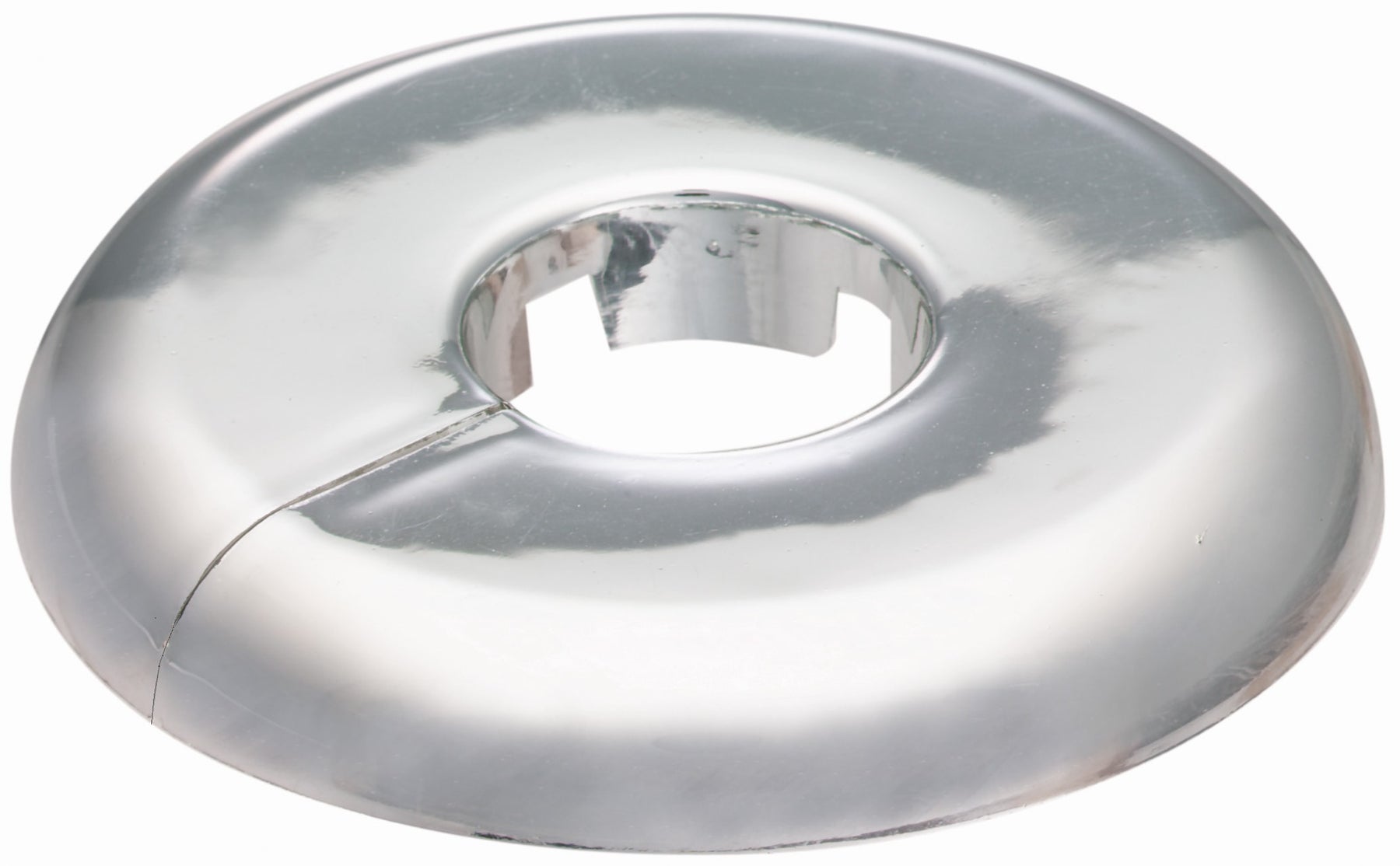 A chrome-plated split escutcheon that neatly covers wall openings around sink drain or supply pipes. Designed for 3/4-in copper pipe, it installs easily without removing the pipe and delivers a high-luster finish with durable plastic construction.