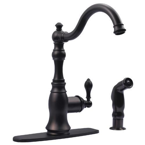 Kingston Brass American Classic Oil-Rubbed Bronze 1-Handle Deck-Mount High-Arc Handle Kitchen Faucet (Deck Plate Included)