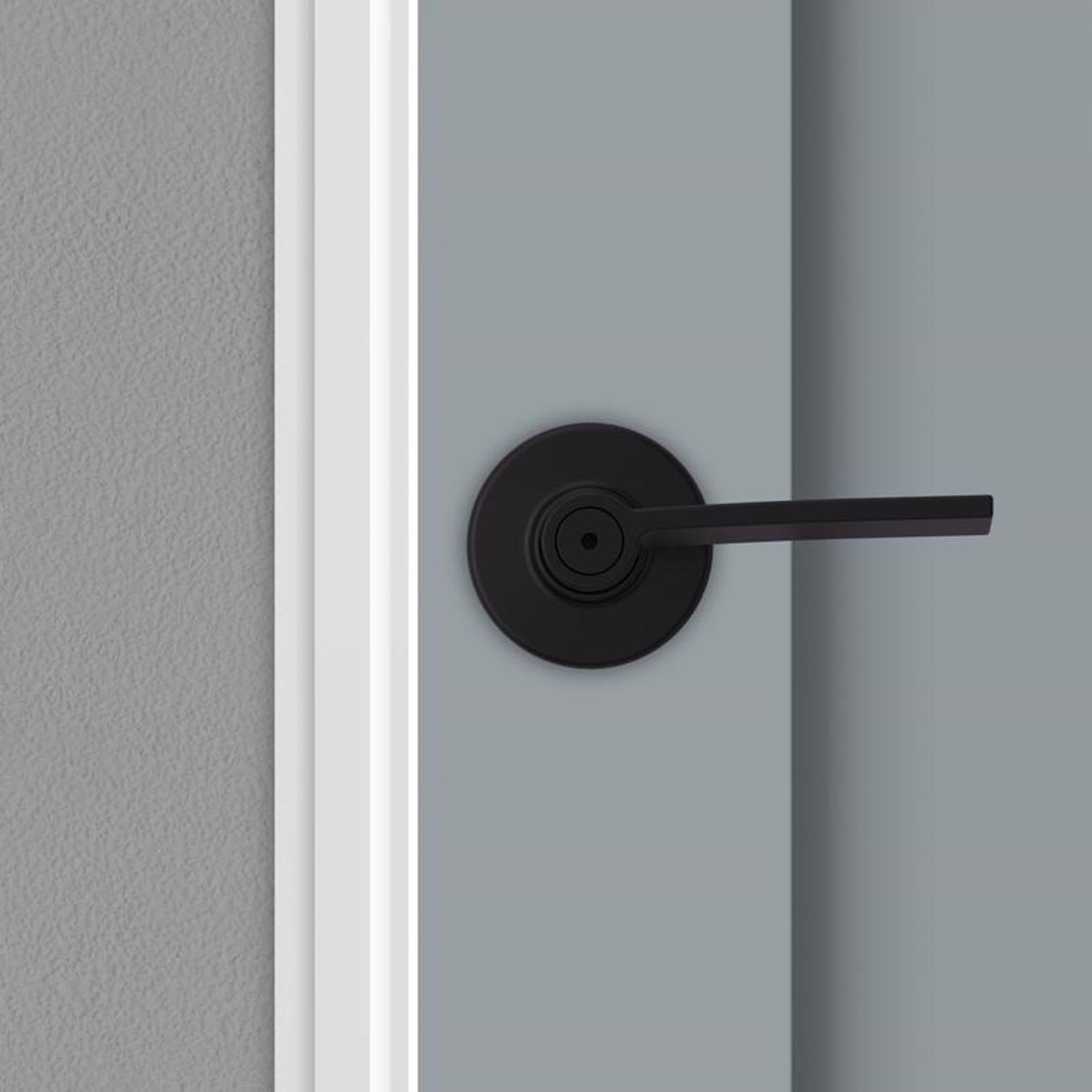 The Kwikset Ladera privacy lever delivers sleek, contemporary style with dependable functionality for bedroom and bathroom doors. Finished in rich Matte Black, it installs easily with a screwdriver and features a reversible design to fit right- or left-handed doors.