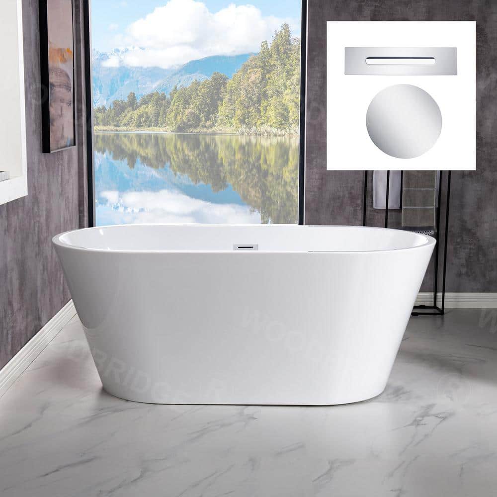 WOODBRIDGE 54 in. Acrylic FlatBottom Double-Ended Freestanding Bathtub with Polished Chrome Overflow and Drain, White