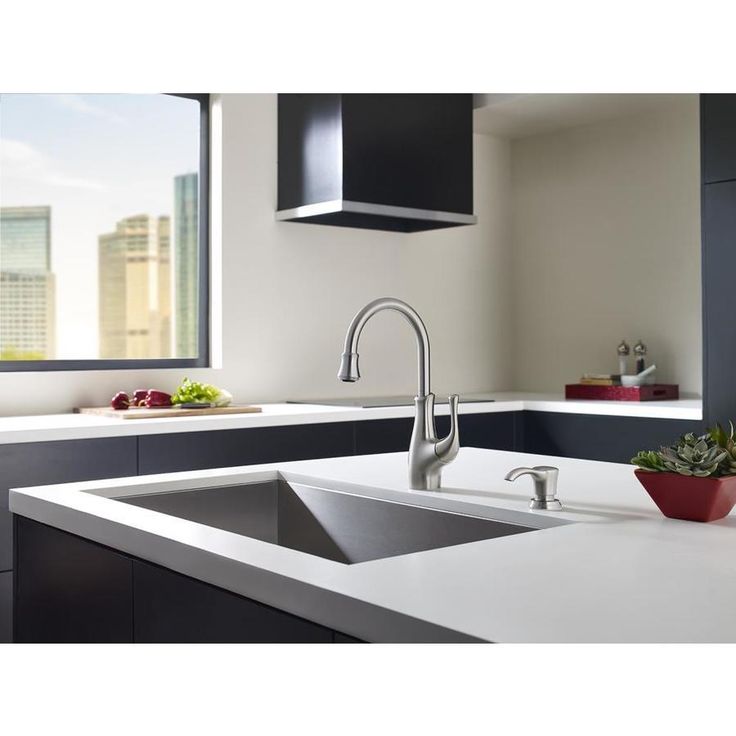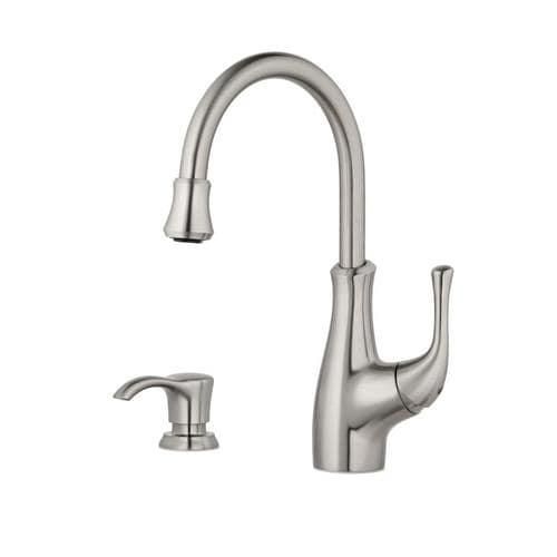 Pfister Vosa Stainless Steel 1-Handle Deck-Mount High-Arc Handle Kitchen Faucet