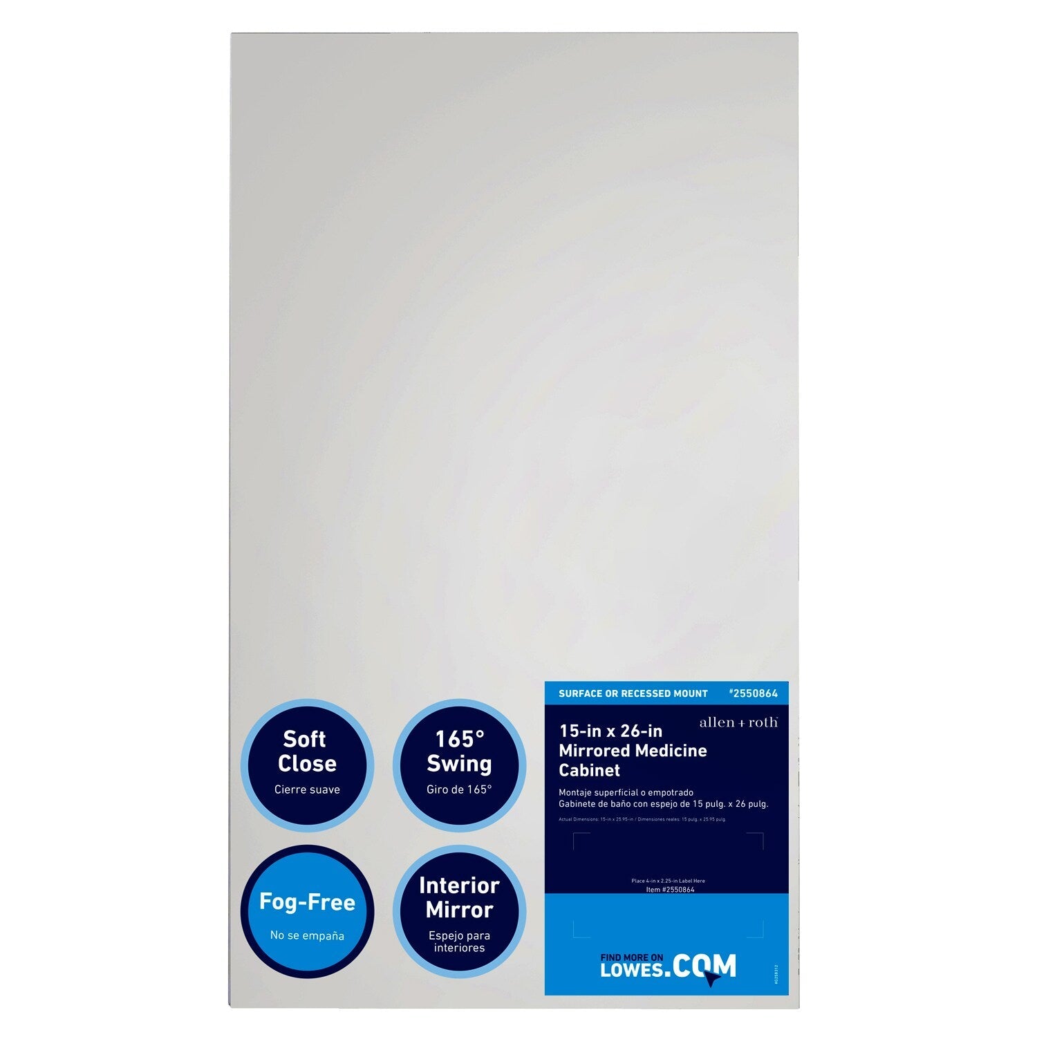 allen + roth 15-in x 26-in Fog Free Surface/Recessed Mount Silver Mirrored Soft Close Medicine Cabinet