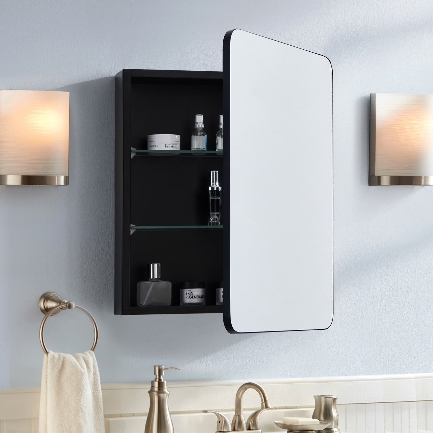 The allen + roth Medicine Cabinet reshapes your bathroom with sleek sophistication and understated luxury. Its matte black finish offers a striking contrast against any wall color, making it a statement piece that complements a variety of decor styles. The gentle close of its hinges speaks volumes of quiet elegance, while the interior glass shelves add a touch of transparency and lightness. Picture this cabinet above a chic vanity, enhancing your space with both practicality and a sense of modern charm. It’s more than just storage; it’s an essential element of contemporary living.