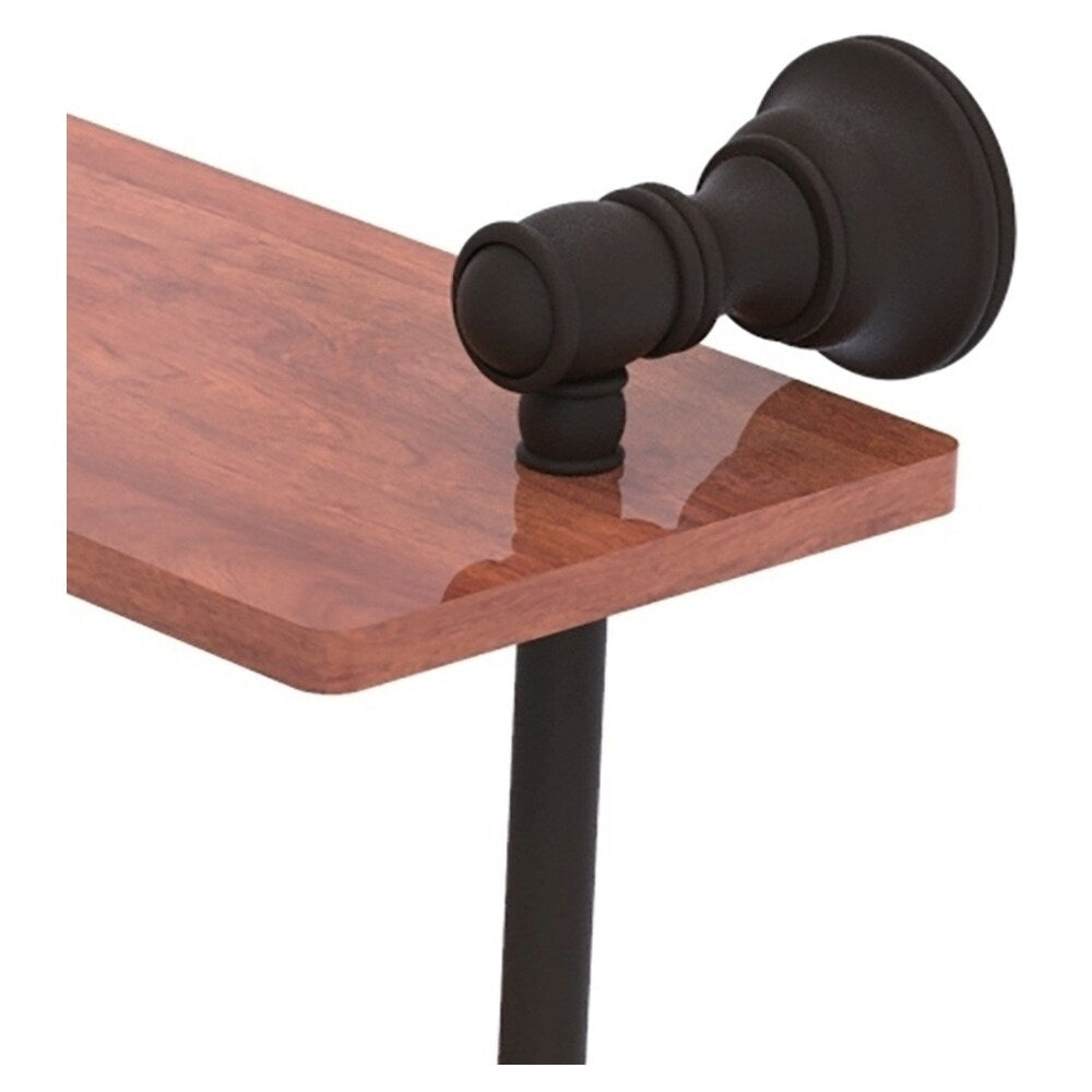 This Carolina collection wall-mounted bathroom shelf combines solid brass framing with coated walnut hardwood shelves for lasting beauty and strength. The oil-rubbed bronze finish and integrated towel bar deliver classic style and everyday functionality in compact, vertical storage.