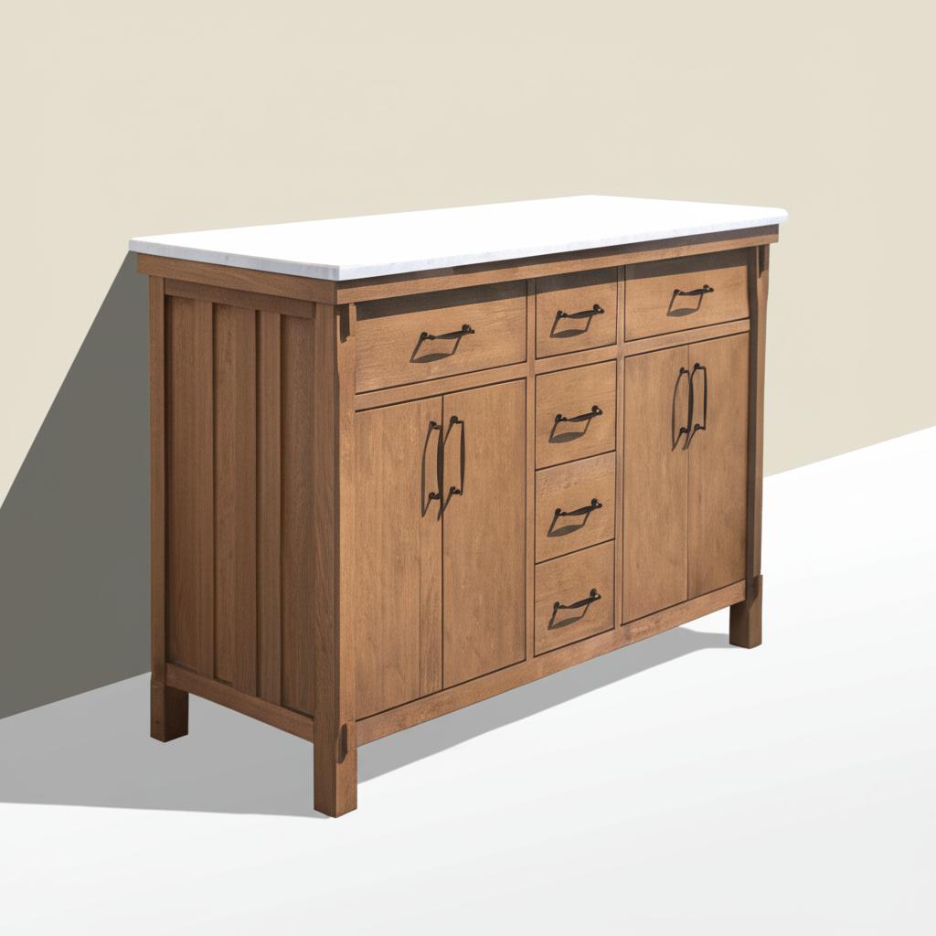 - Ample Storage Options: Includes two soft-closing two-door cabinets, two standard drawers, two tilt-down drawers, and one double-deep drawer.
