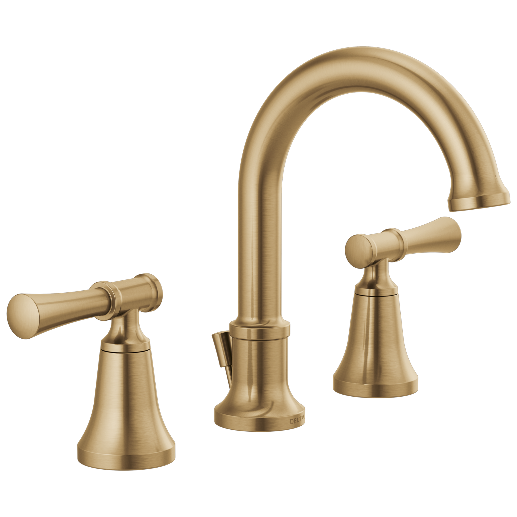 The Delta Chamberlain widespread bathroom faucet pairs timeless curves with durable performance in a Champagne Bronze finish. Designed for 3-hole, 6–16 inch installations, it includes a matching drain and features WaterSense certification for efficient water use.