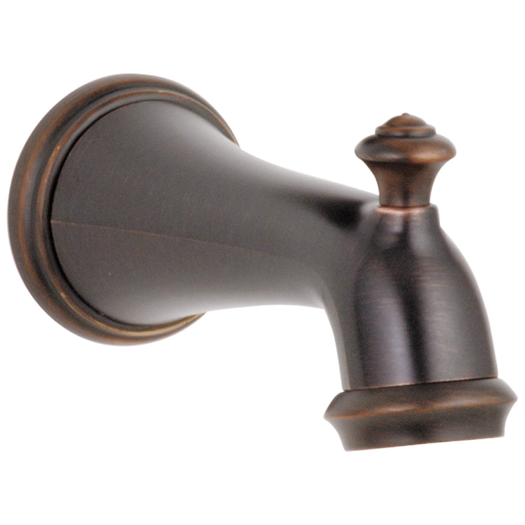 A durable Delta tub spout with an integrated pull-up diverter for easy switching between tub and shower. Designed for universal fit installation to refresh or repair existing setups.