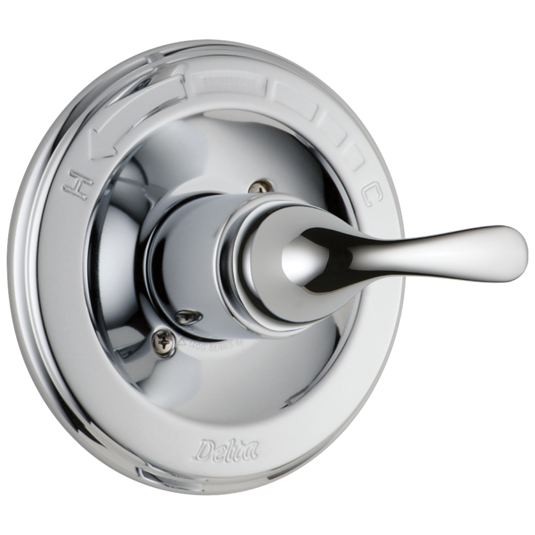 A polished chrome, single-lever volume control trim for Delta bathtub/shower setups. Designed for MultiChoice Universal rough-in valves, it delivers reliable pressure-balanced temperature control with ADA-friendly operation.