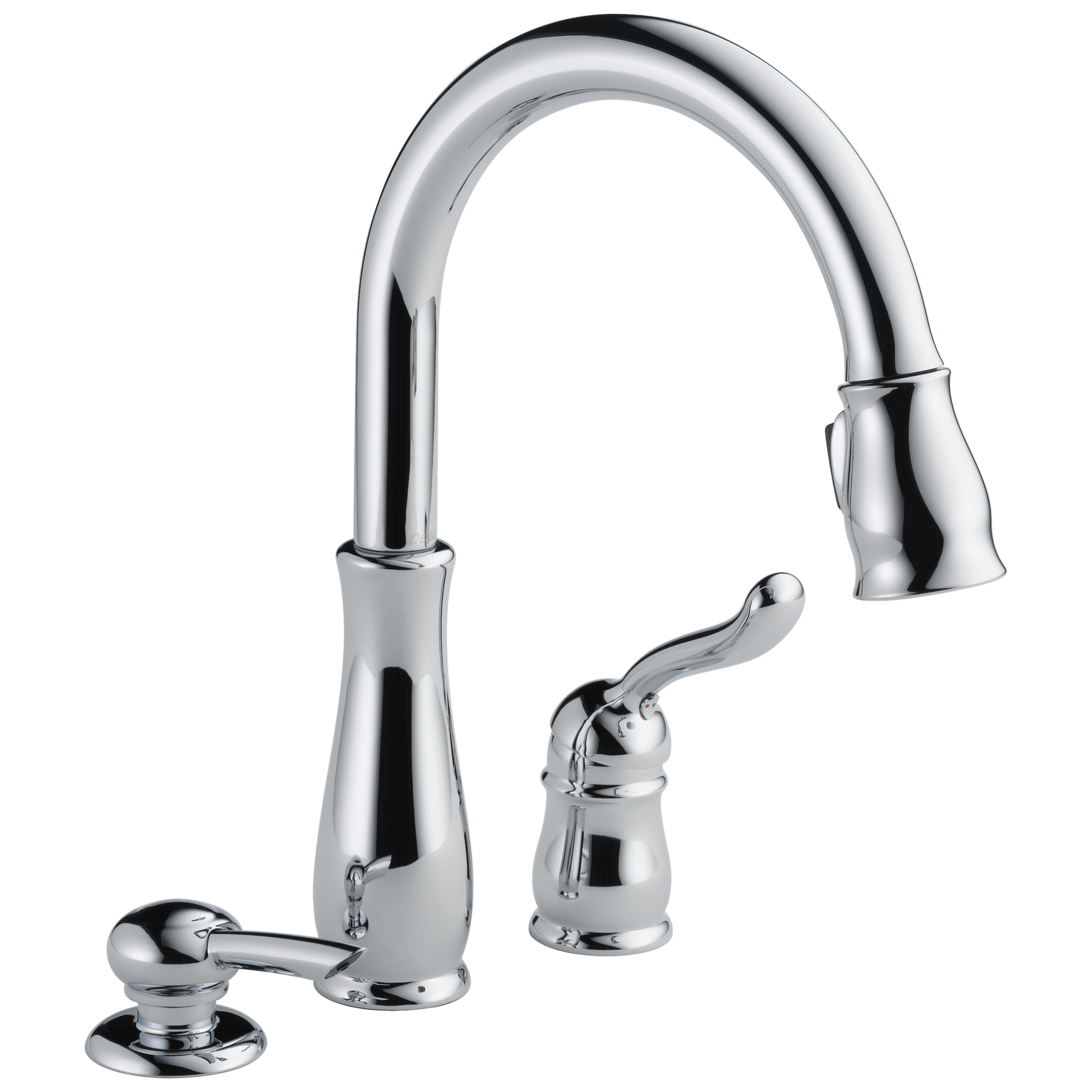 Delta Leland Chrome 1-Handle Deck-Mount Pull-Down Kitchen Faucet with Soap Dispenser