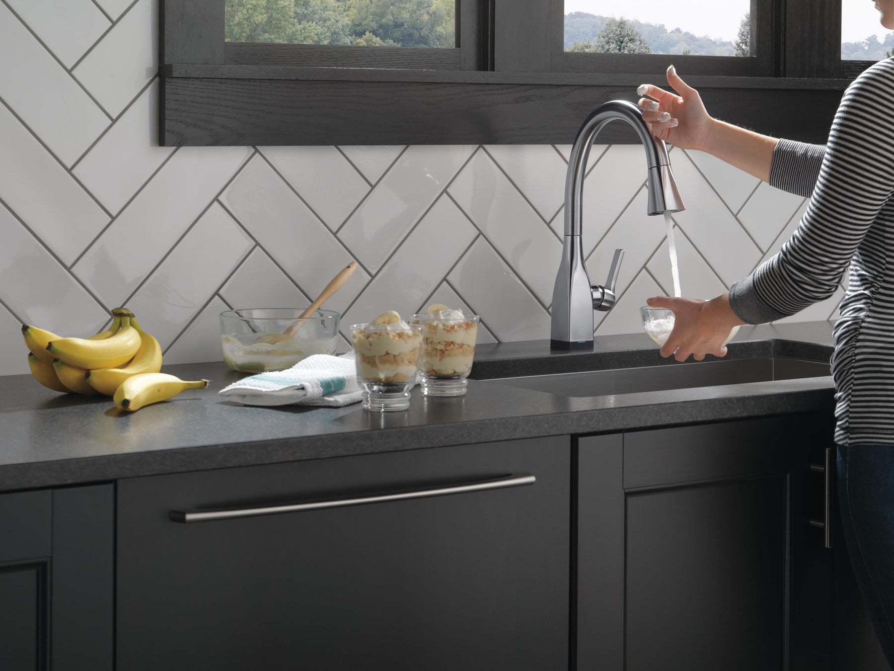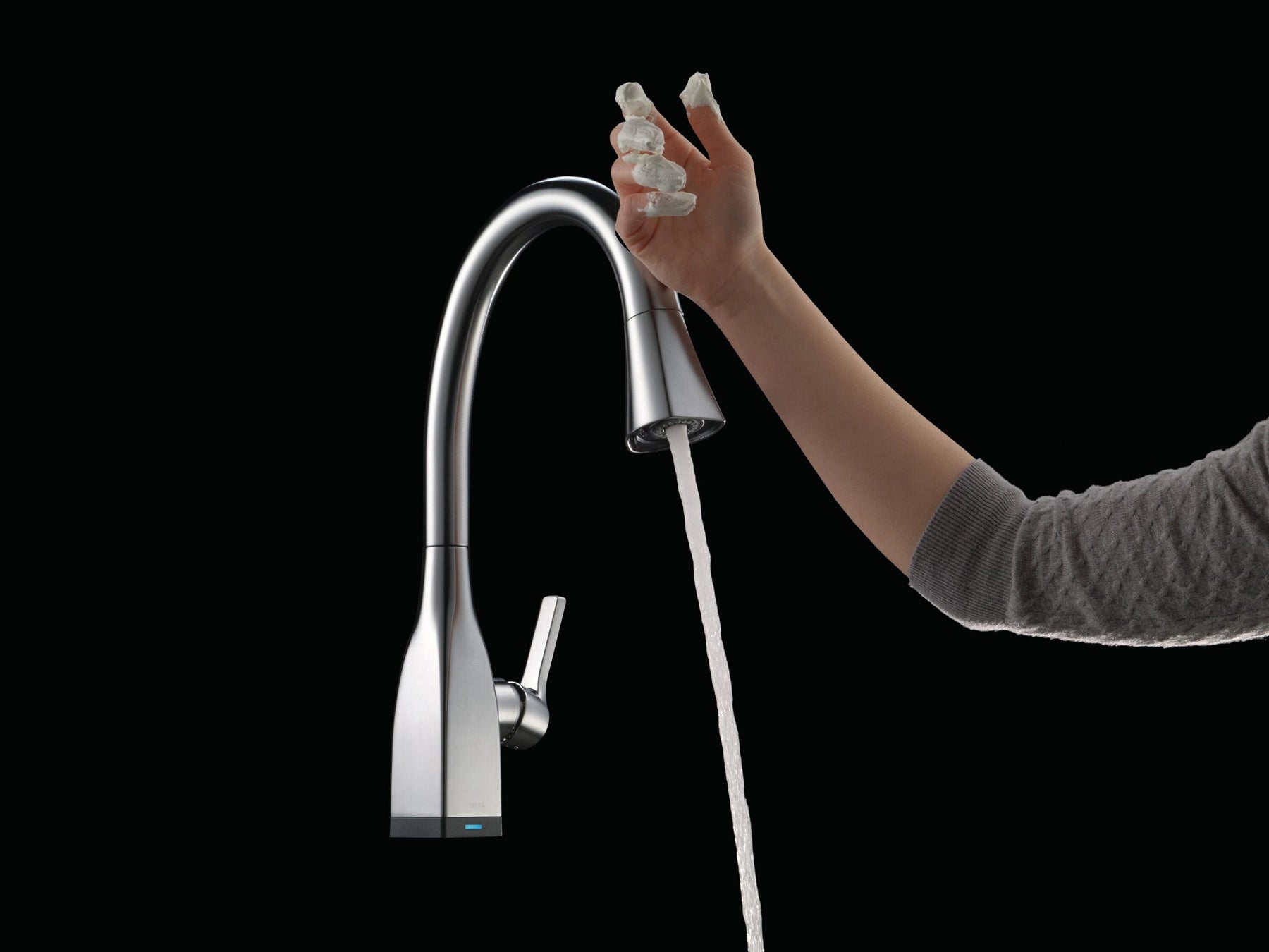 • Touch2O Activation: Tap anywhere on the spout or handle to turn water on/off, even with messy hands
