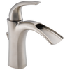 The Delta Nyla single-handle bathroom faucet features an open-channel spout that creates a soothing waterfall effect in a durable stainless finish. Designed for 1- or 3-hole (4-in centerset) installations, it includes a plastic pop-up drain and meets WaterSense standards for efficient performance.
