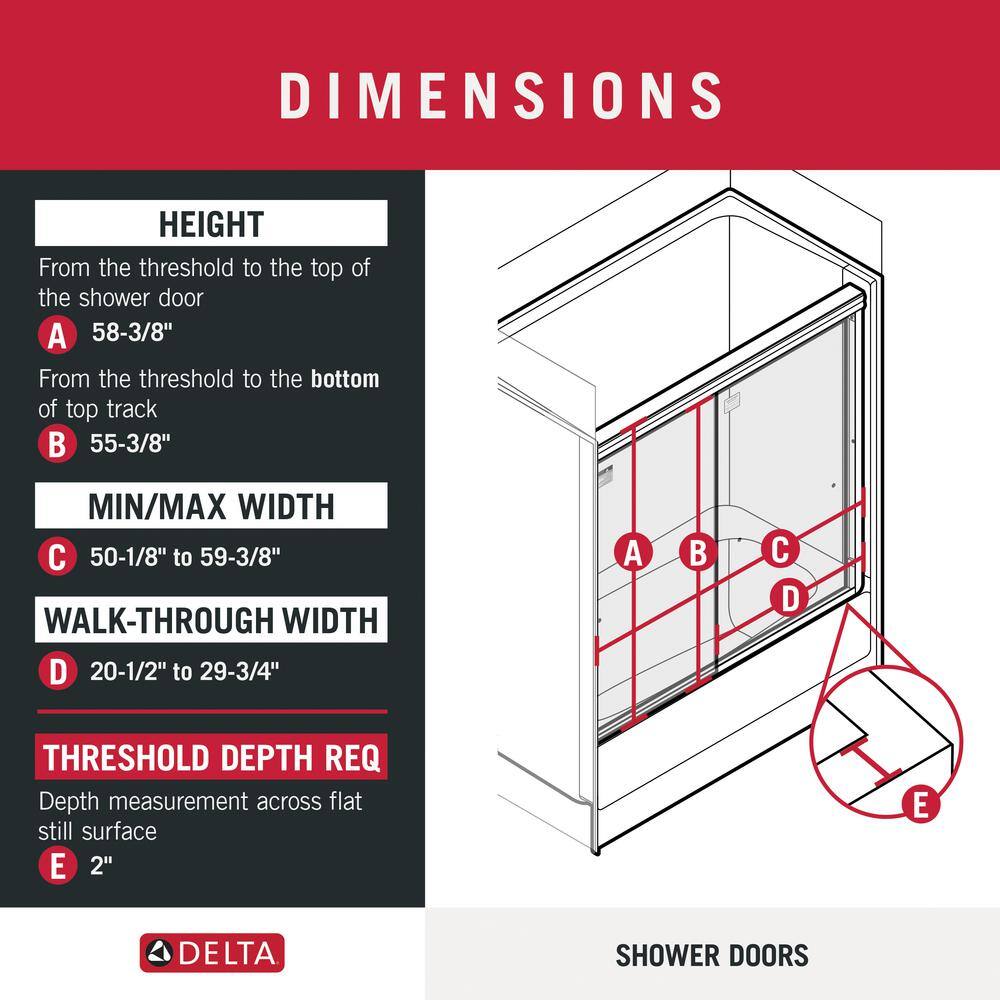 Delta Traditional 60 in. x 58-3/8 in. Semi-Frameless Sliding Bathtub Door, Chrome, 1/4 in. (6mm) Clear Glass