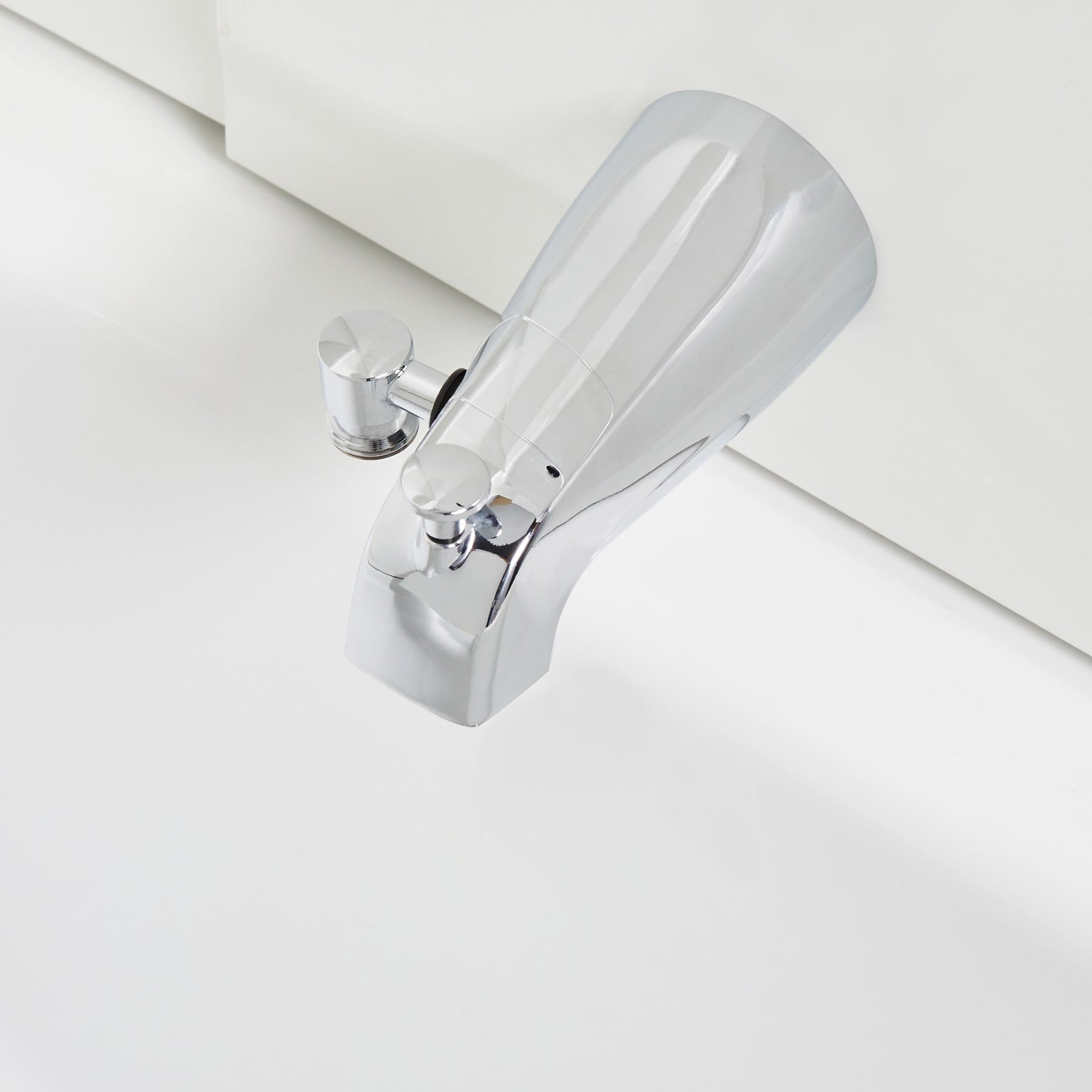 Upgrade your tub with this Delta universal-fit diverter spout in a polished chrome finish. Designed for easy retrofit installs, it works with slip-fit 1/2-in CWT and 1/2-in or 3/4-in IPS threaded connections for broad compatibility.