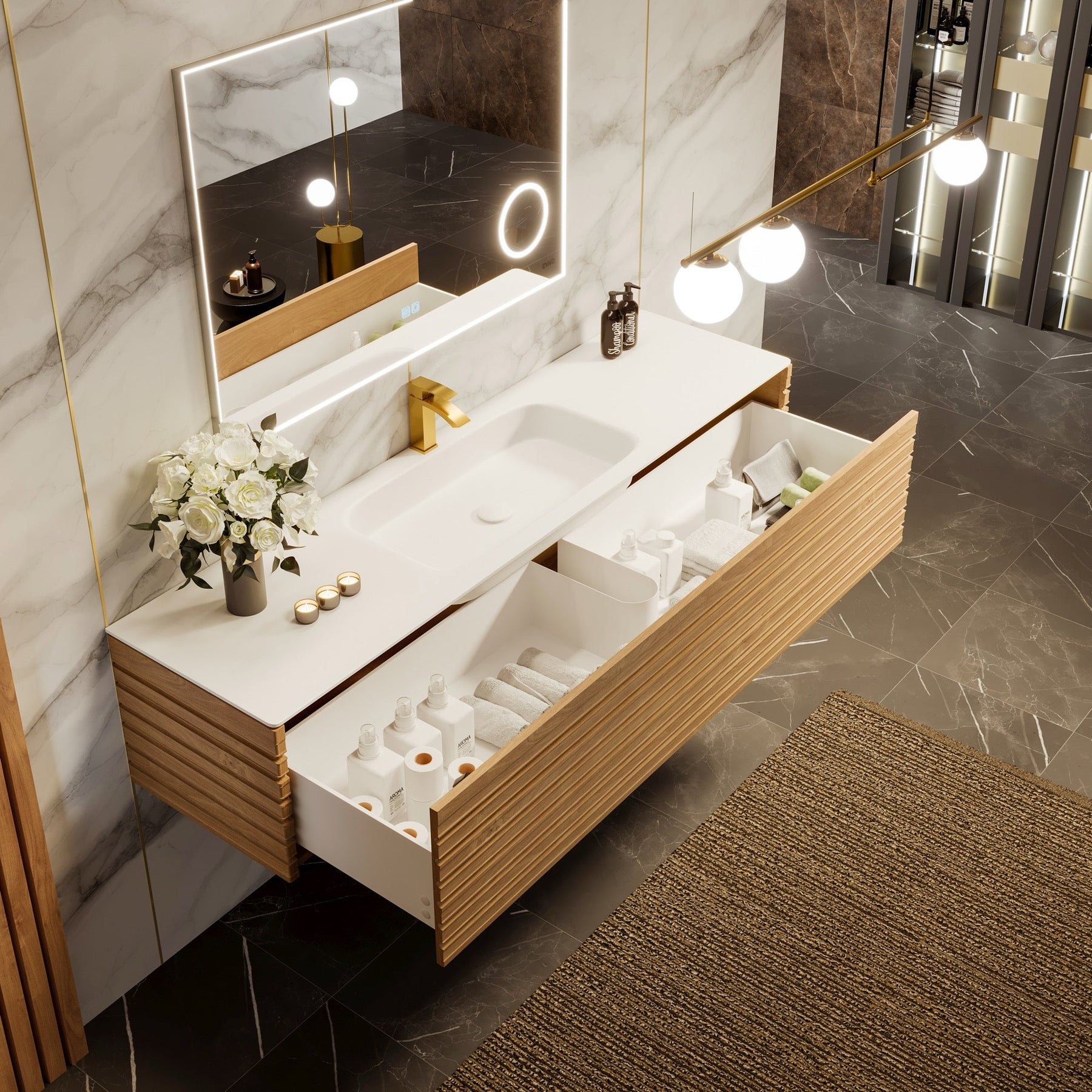 Elevate your bath with the Allure—shop now for a seamless, solid-oak vanity that blends modern design with effortless function.