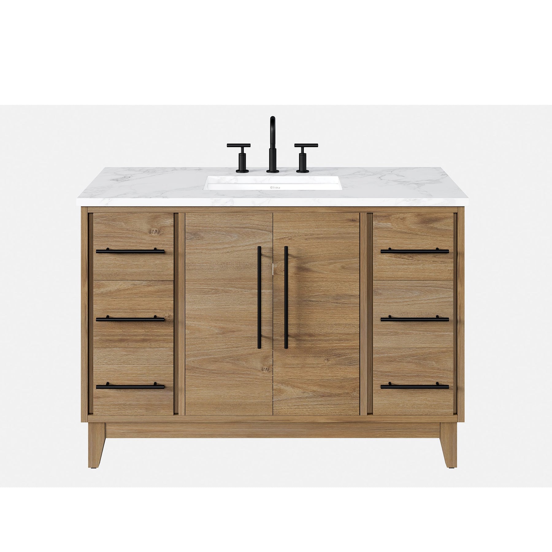 Eviva Graham 48"W x 22"D Oak Bathroom Vanity with White Arabescato Engineered Stone Countertop and Undermount Ceramic Sink