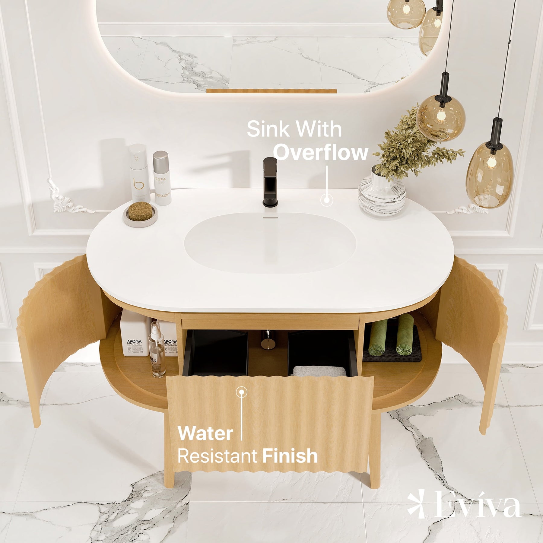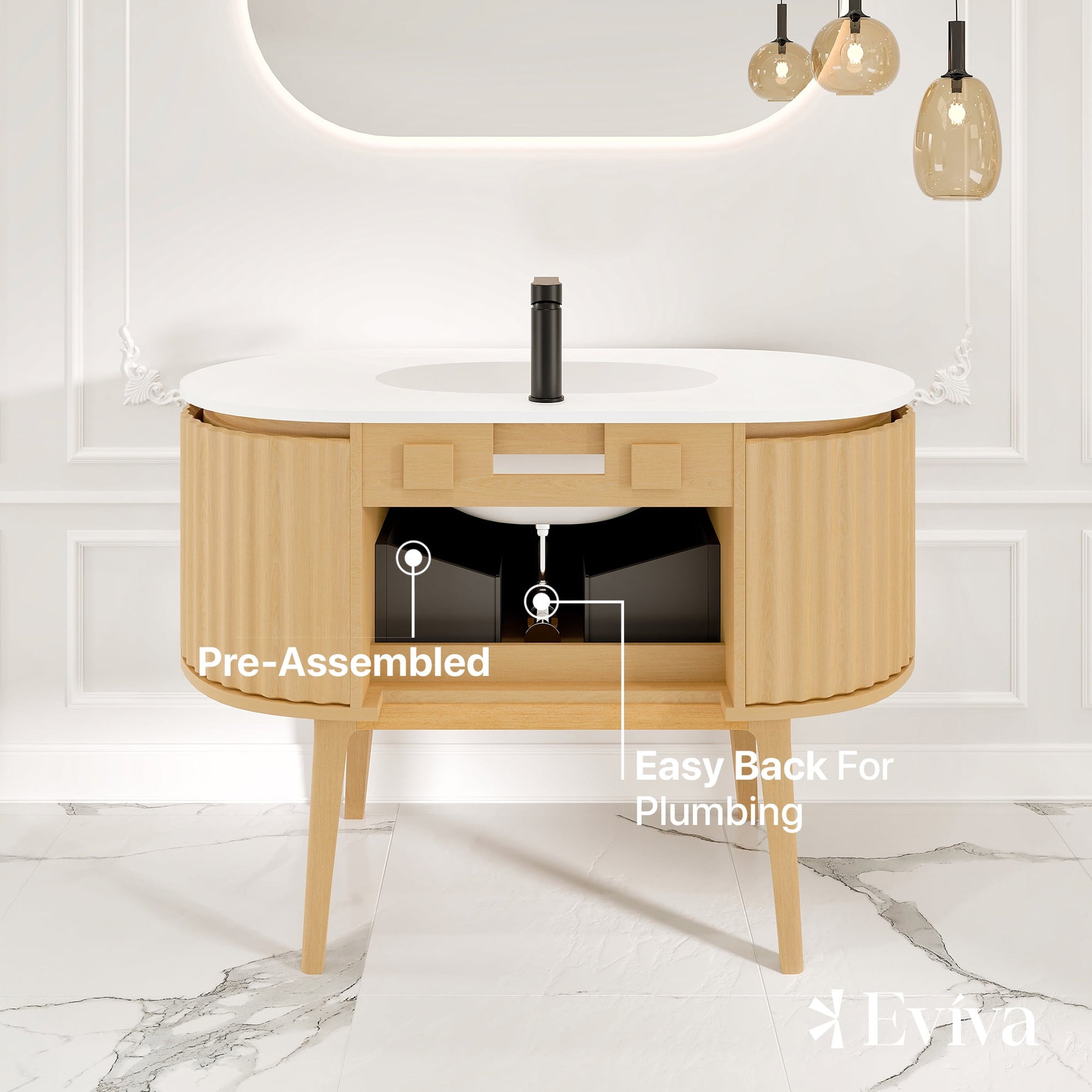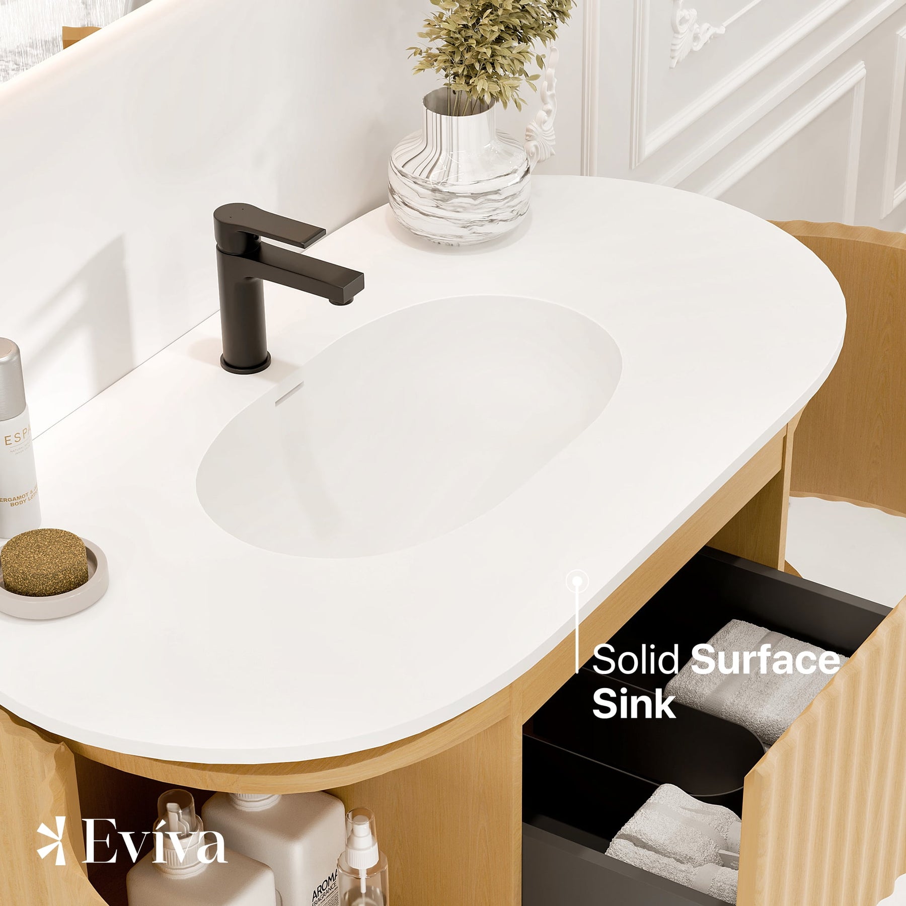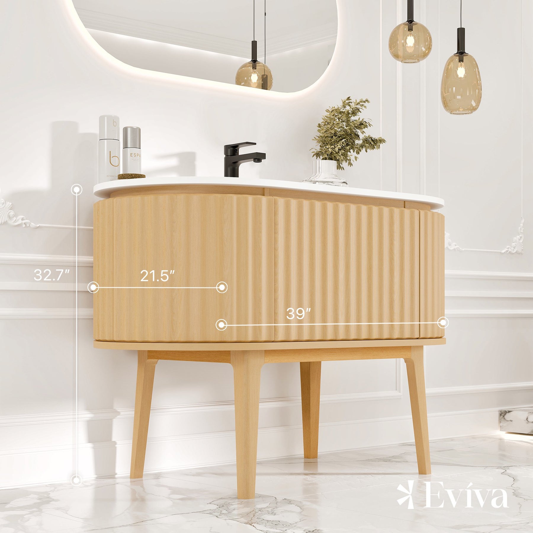 Eviva Haven 39"W x 22"D Natural Oak Bathroom Vanity with White Solid Surface Countertop and Integrated Sink
