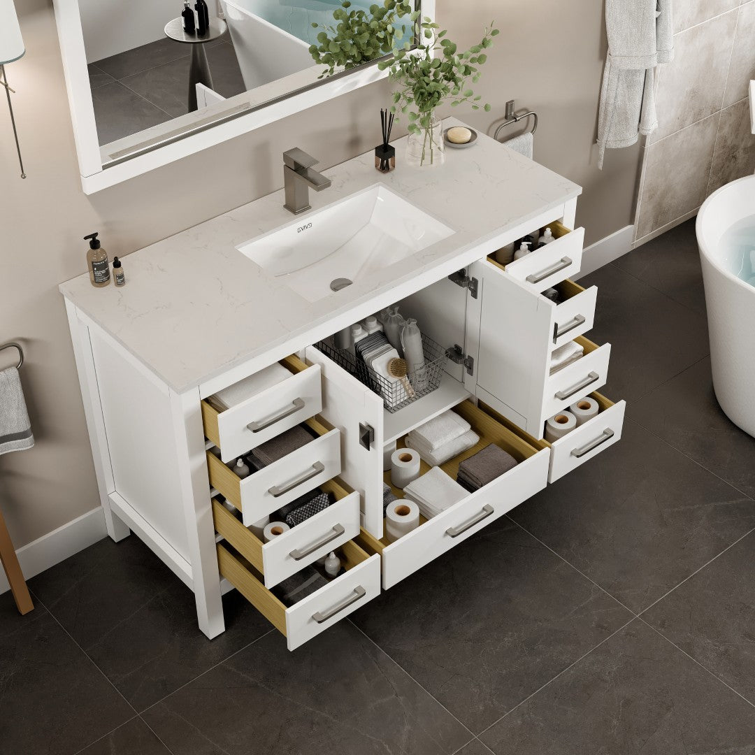 Eviva London 54" Single-Sink Vanity with White Carrara Quartz Top