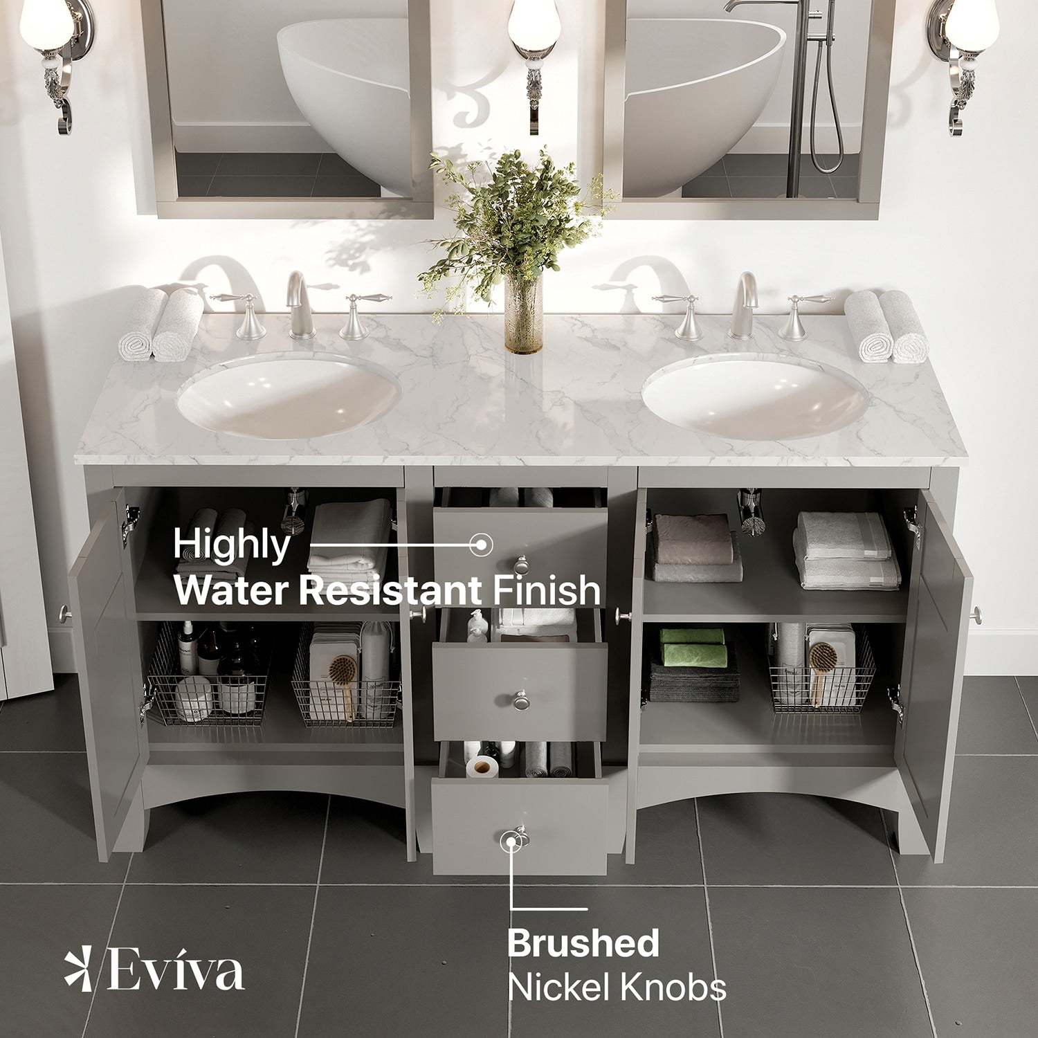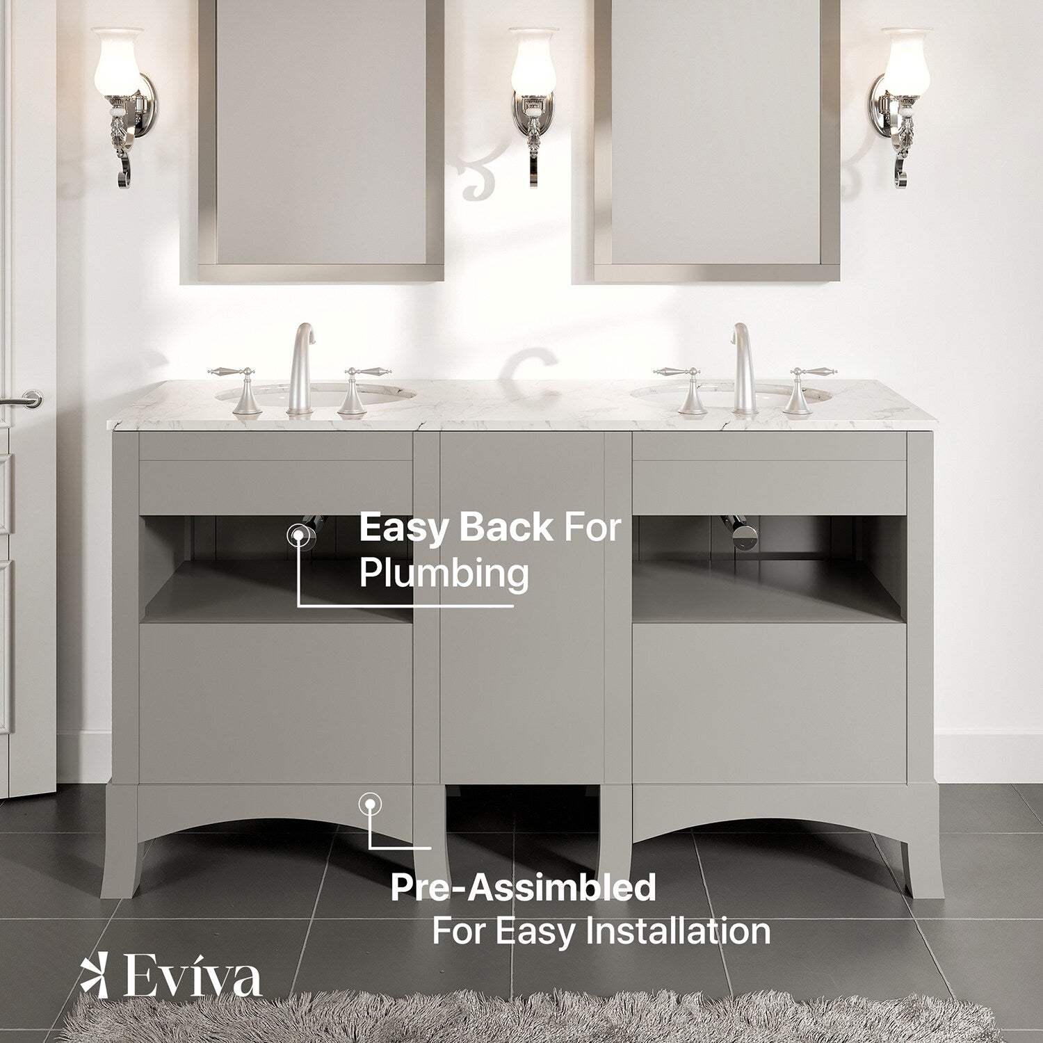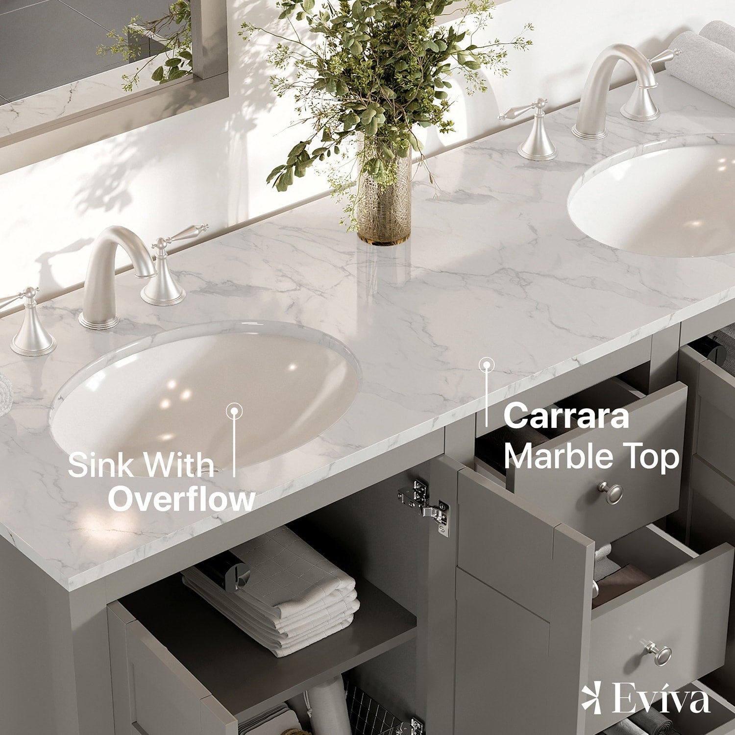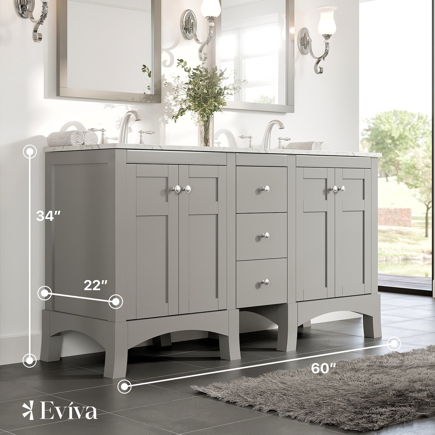Eviva New Jersey 60-in W x 22-in D x 34-in H Freestanding Double Sink Bathroom Vanity in Gray with White Carrara Marble Top