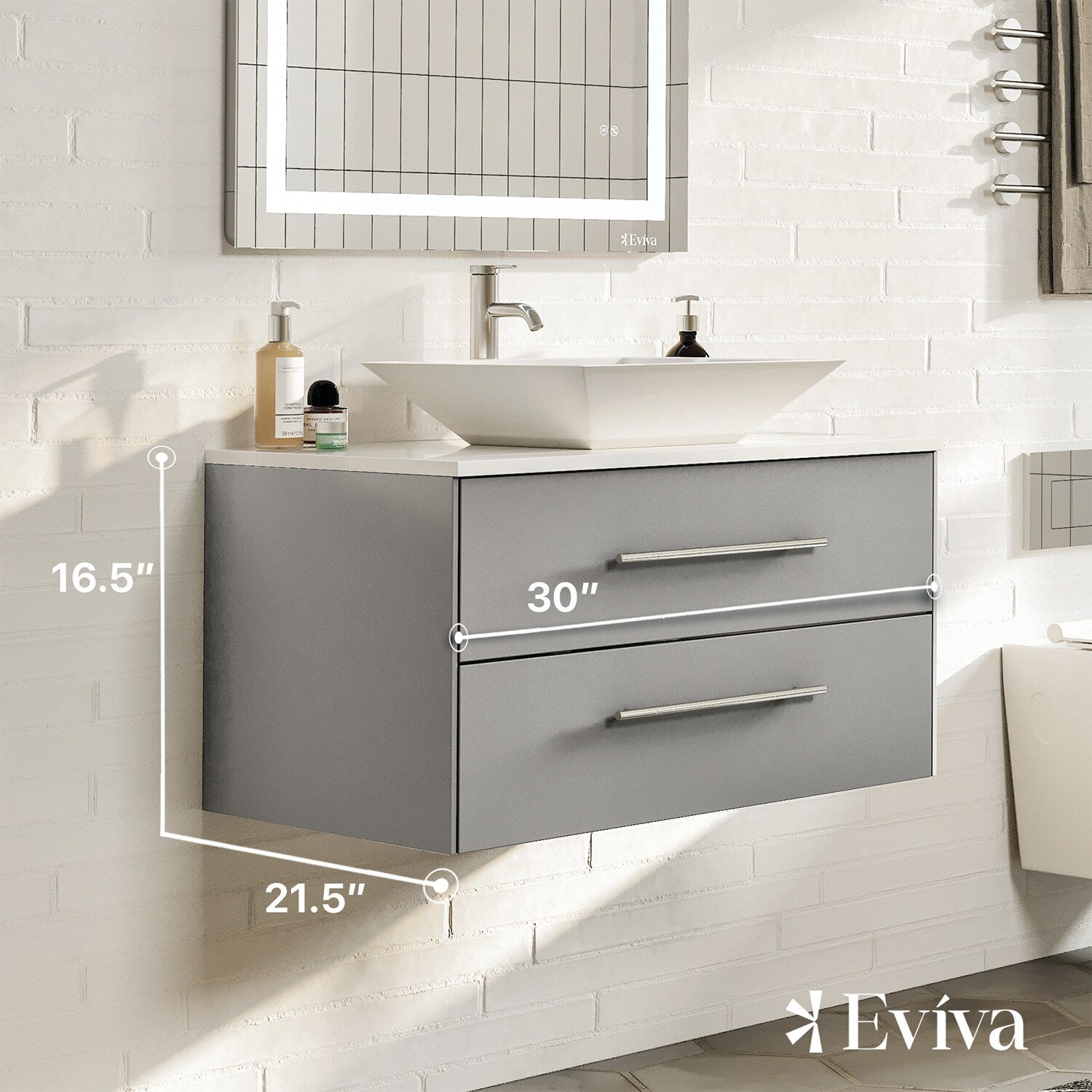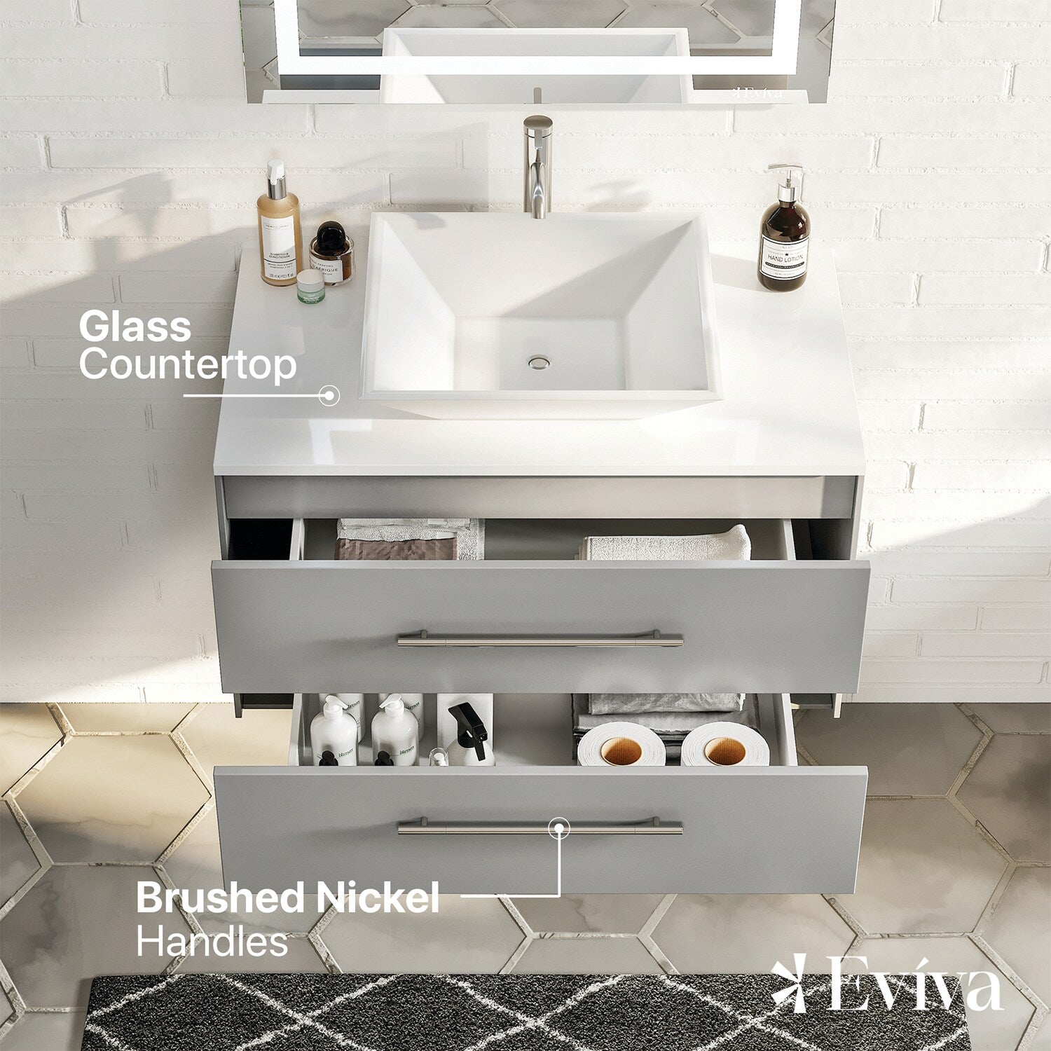 Eviva Totti Wave 30 in. W x 21.5 in. D x 16.5 in. H Floating Bathroom Vanity in Gray with White Glass Top and Vessel Sink