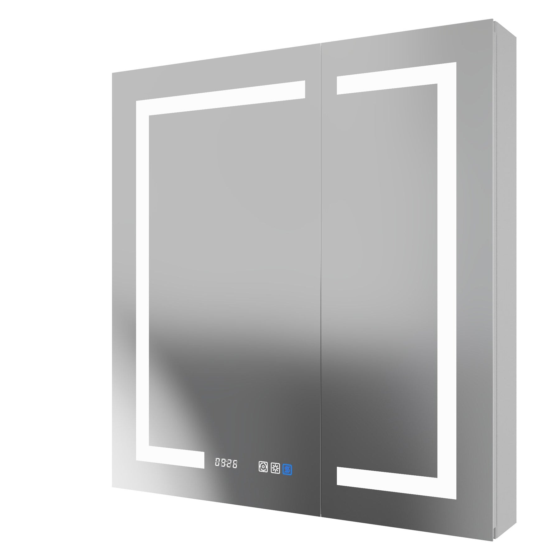 ExBrite 30-in x 32-in Lighted LED Fog Free Surface/Recessed Mount Silver Mirrored Soft Close Medicine Cabinet with Outlet