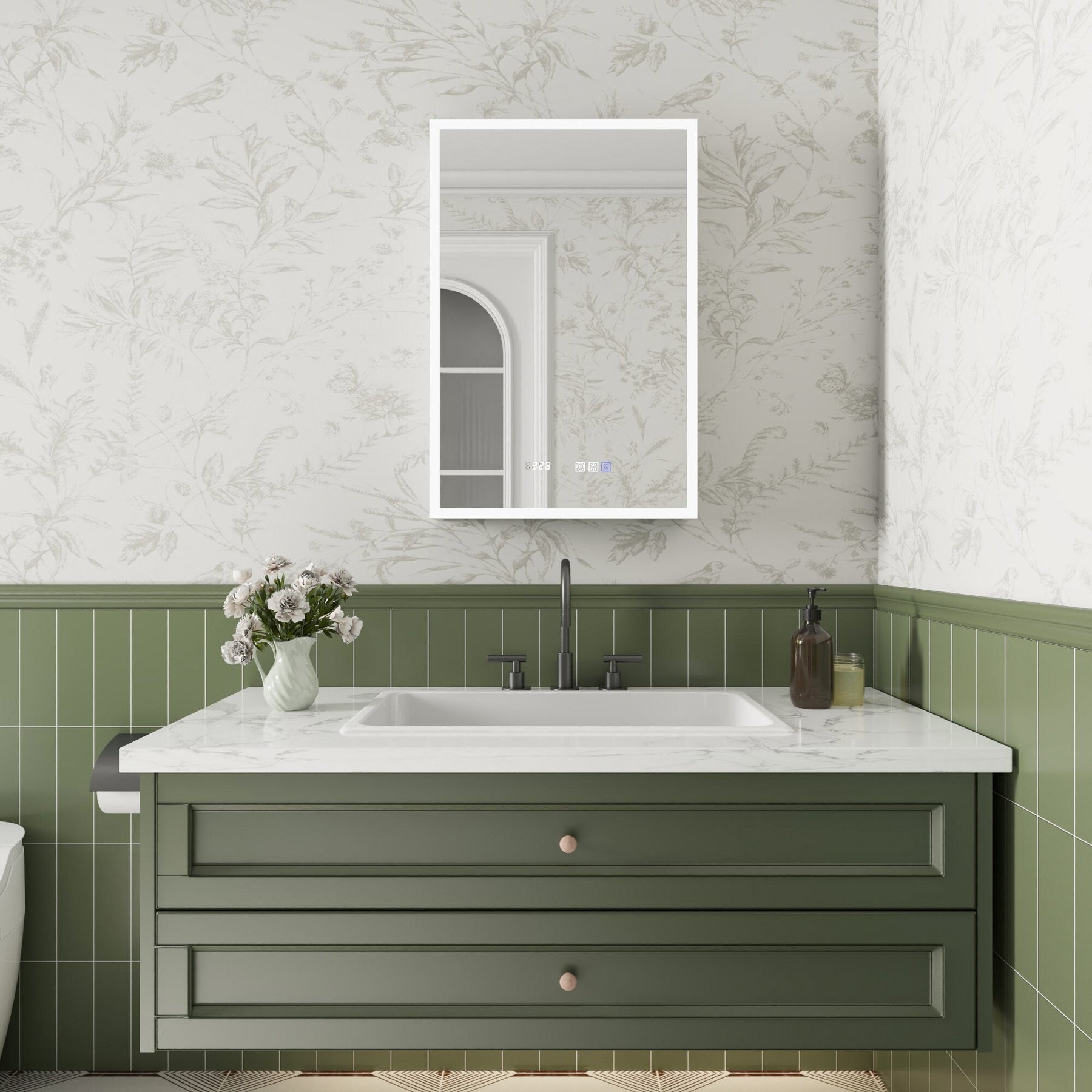 Upgrade your bathroom with the Luvia 20-in x 30-in Lighted LED Fog Free Medicine Cabinet. This smart storage solution combines elegant design with innovative features like adjustable lighting, a built-in defogger, and soft-close doors for a seamless, modern bathroom experience.