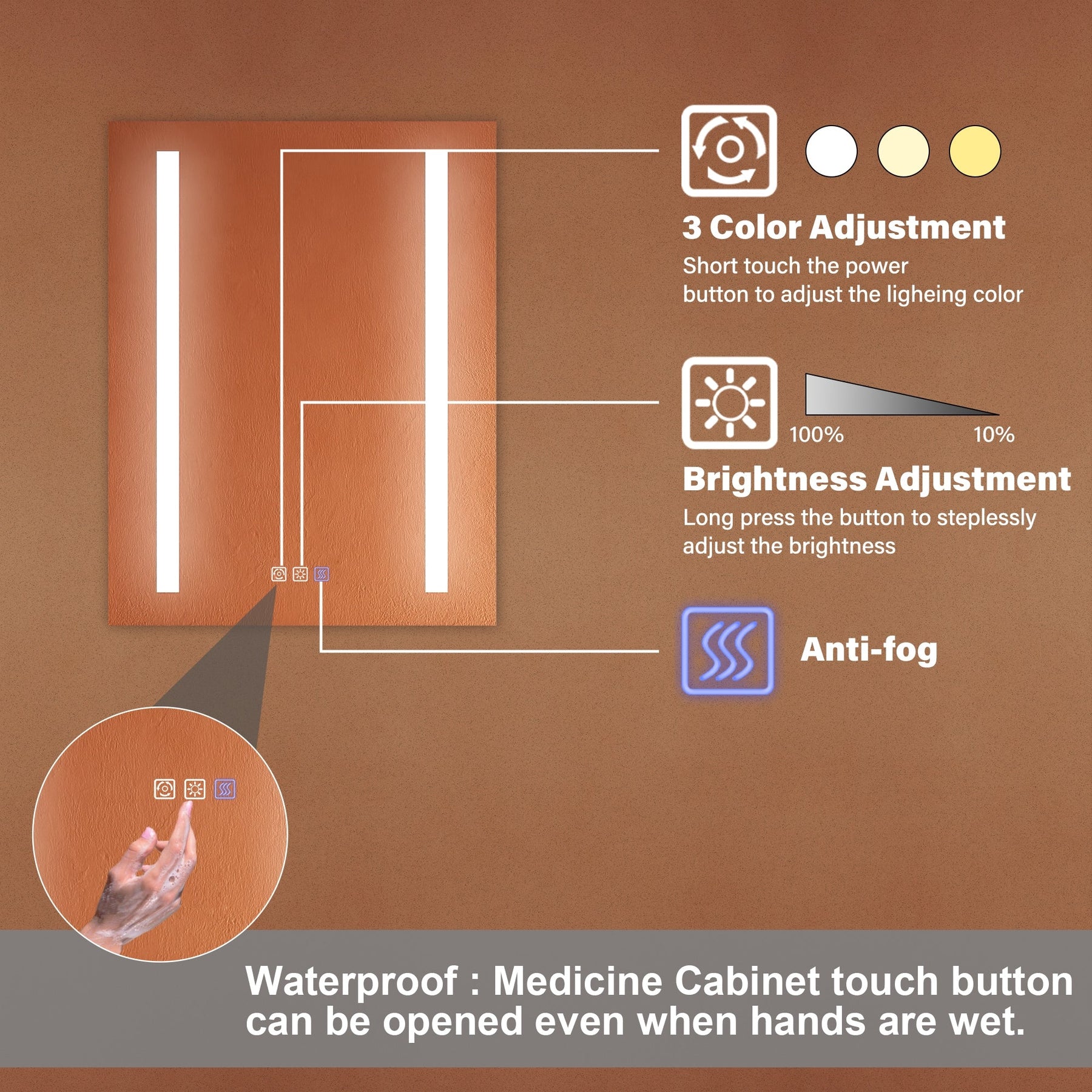 ExBrite Opale 20-in x 26-in Lighted LED Fog Free Surface/Recessed Mount Silver- 2 Light-26"h- Left Mirrored Soft Close Medicine Cabinet with Outlet