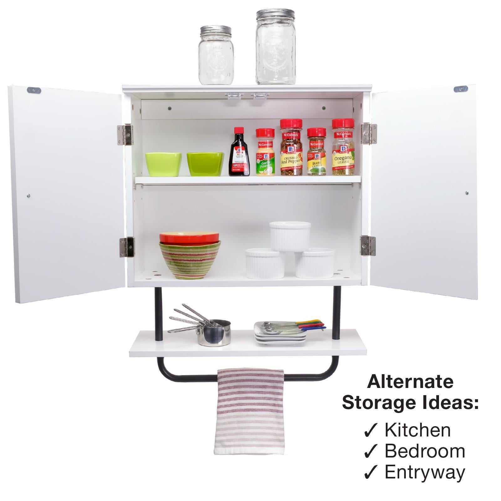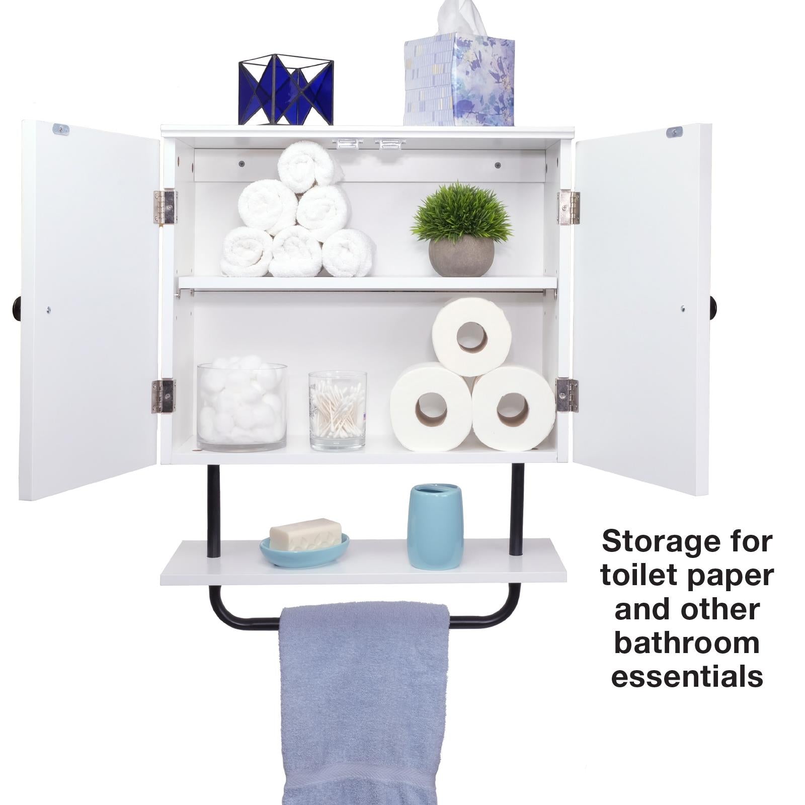 - Ample Storage: Features two interior shelves, an exterior shelf, and a towel rack to efficiently organize your bathroom or kitchen items.