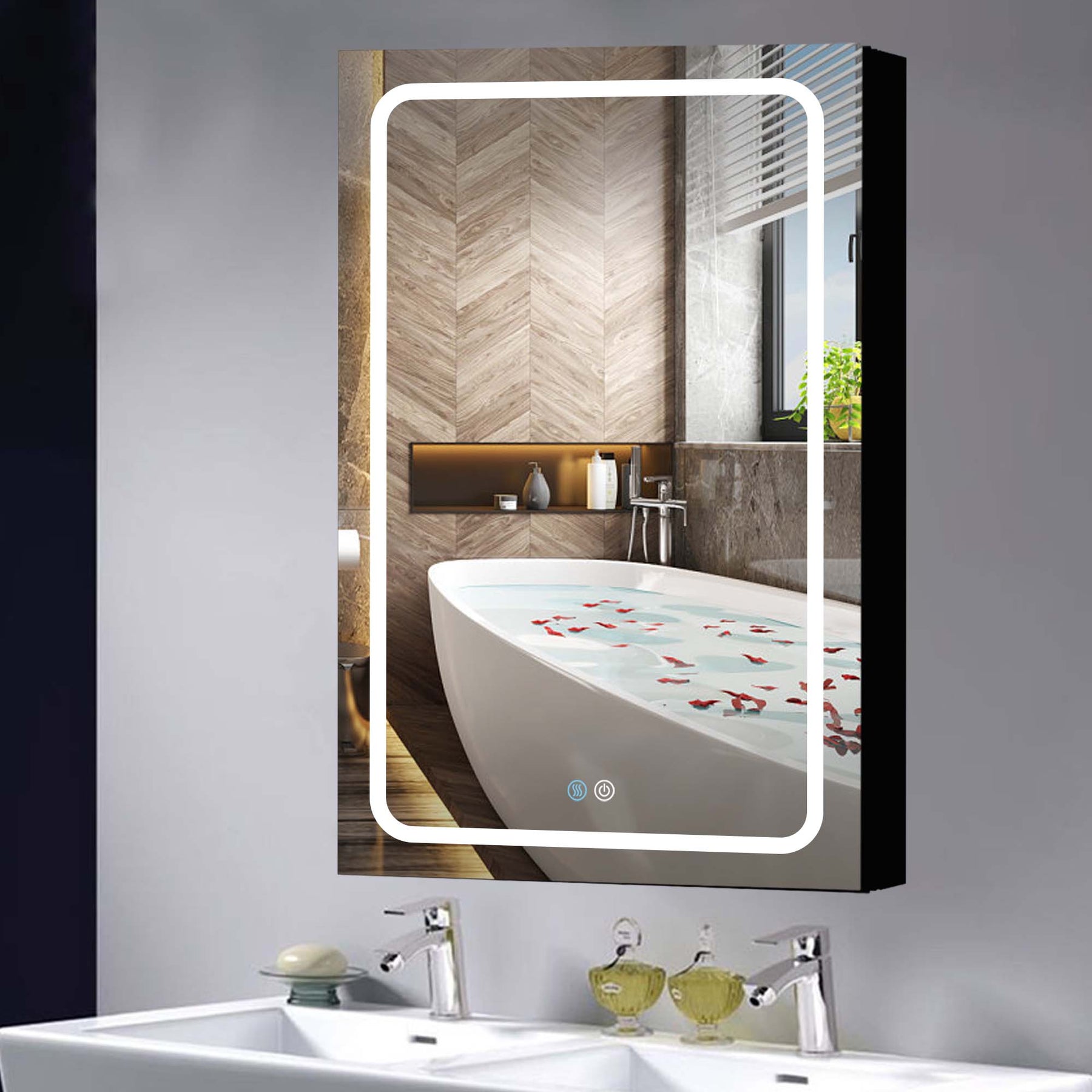 Forclover 20-in x 30-in Lighted LED Fog Free Surface Mount Black Mirrored Soft Close Medicine Cabinet