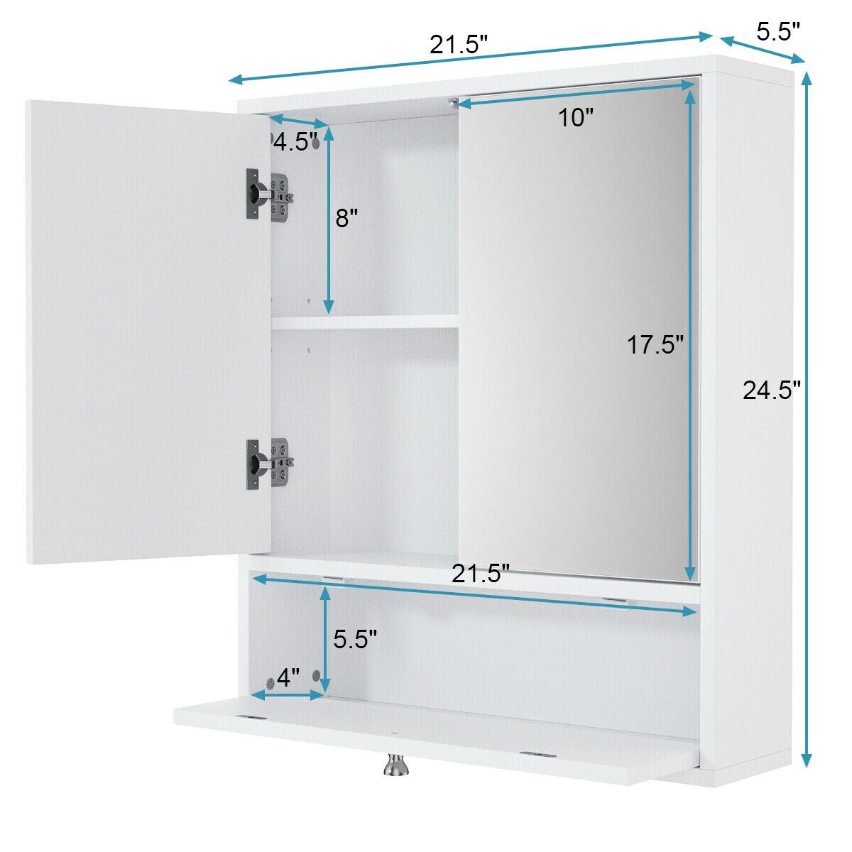 • Elegant Appearance: Mirrored door with a pure white finish adds sophistication to any bathroom.