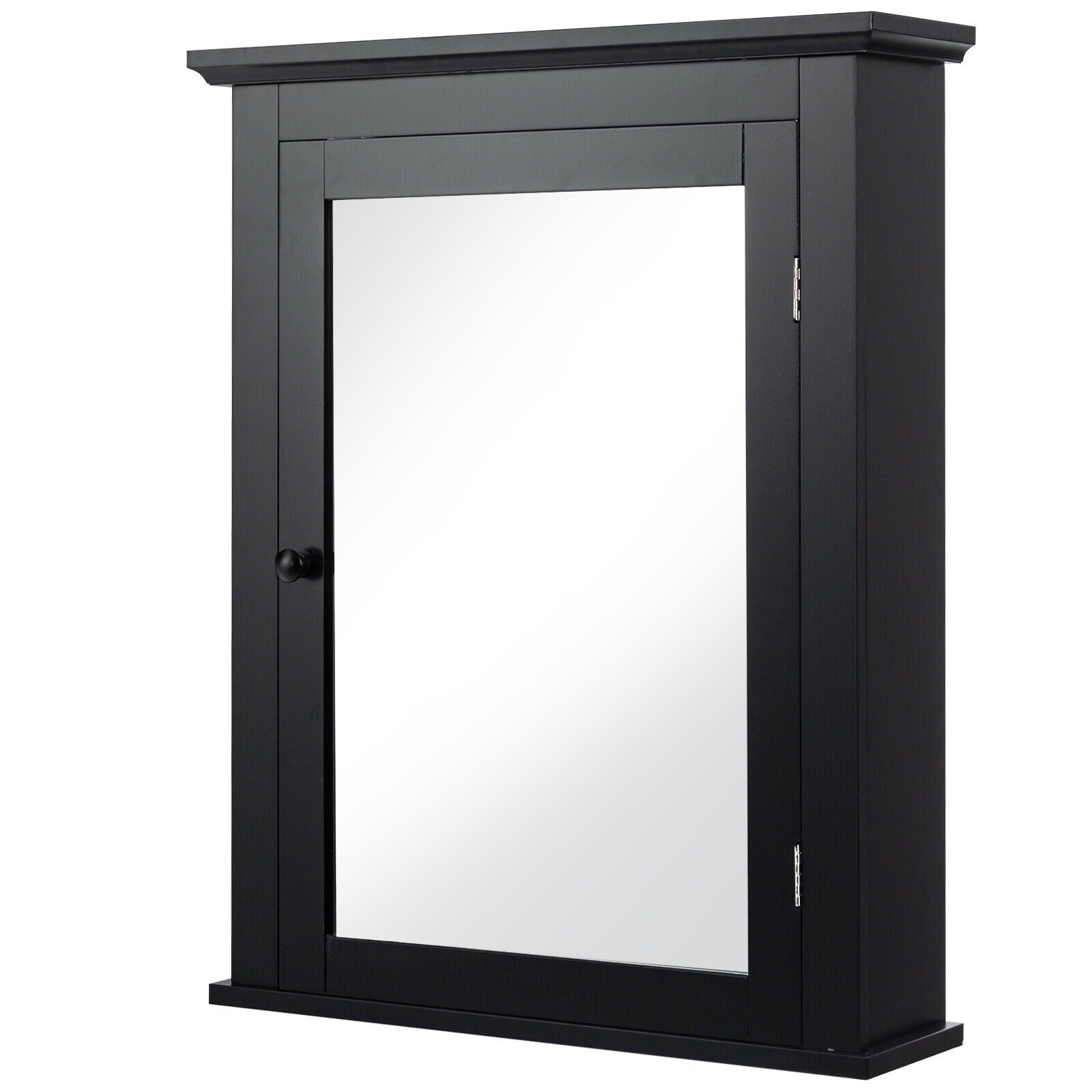 Forclover 22-in x 27-in Surface Mount Black Mirrored Medicine Cabinet