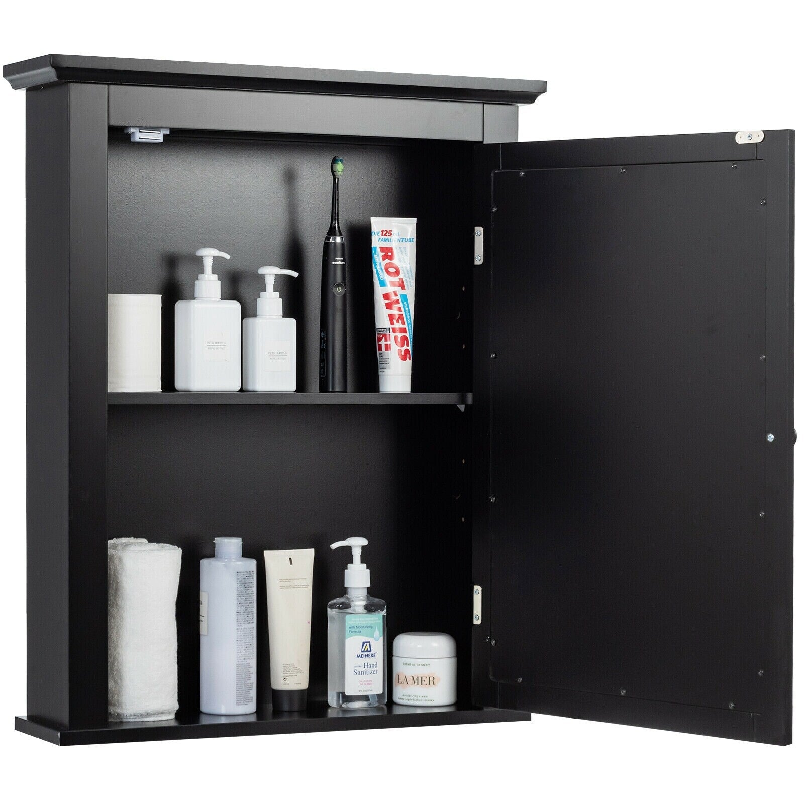 The Forclover Black Mirrored Medicine Cabinet effortlessly blends style and functionality with its sleek surface mount design. Made from high-density MDF with waterproof paint, this cabinet is both durable and moisture-resistant, making it perfect for any bathroom setting.